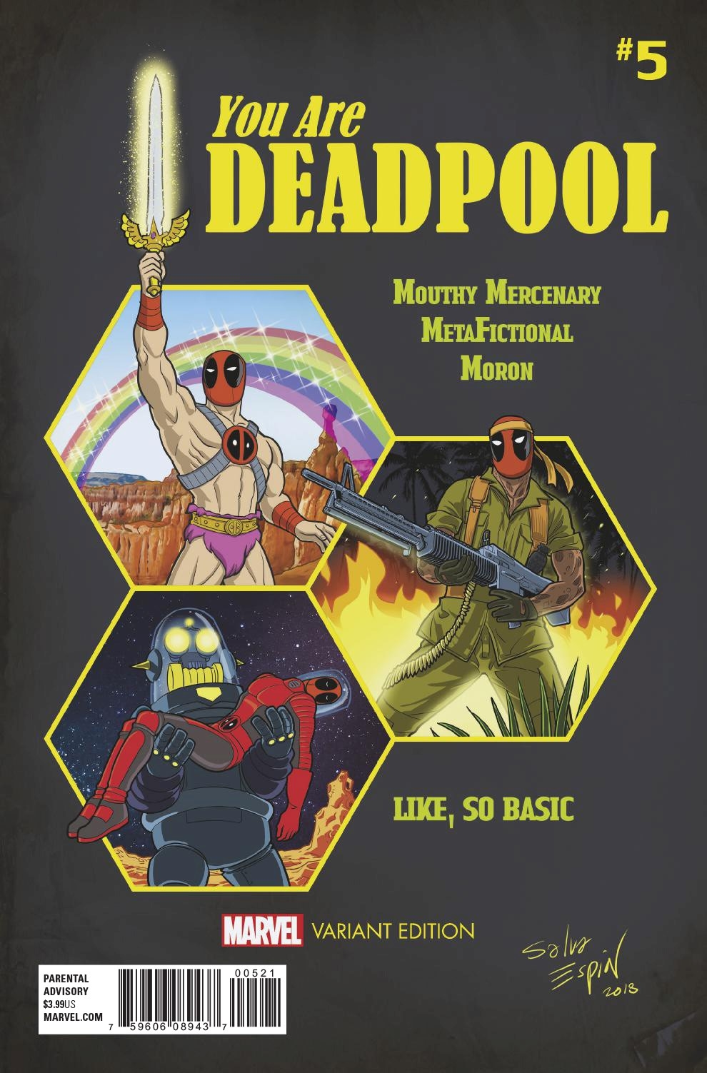 DID YOU EVER WANT TO BE DEADPOOL??? Now's your chance! This weekly series is not JUST the most amazing comic book you've ever read...it's also a role-playing adventure! YOU decide what choices Deadpool makes! YOU keep track of your scores issue by issue! YOU roll dice to combat various foes! Travel through Marvel history as Deadpool to meet Hulk in the swinging '60s! To smell Man-Thing in the swampy '70s! To be "seen" by Daredevil in the hard-boiled '80s! And avoid the many BAD ENDINGS you could fall into...or suffer the consequences!