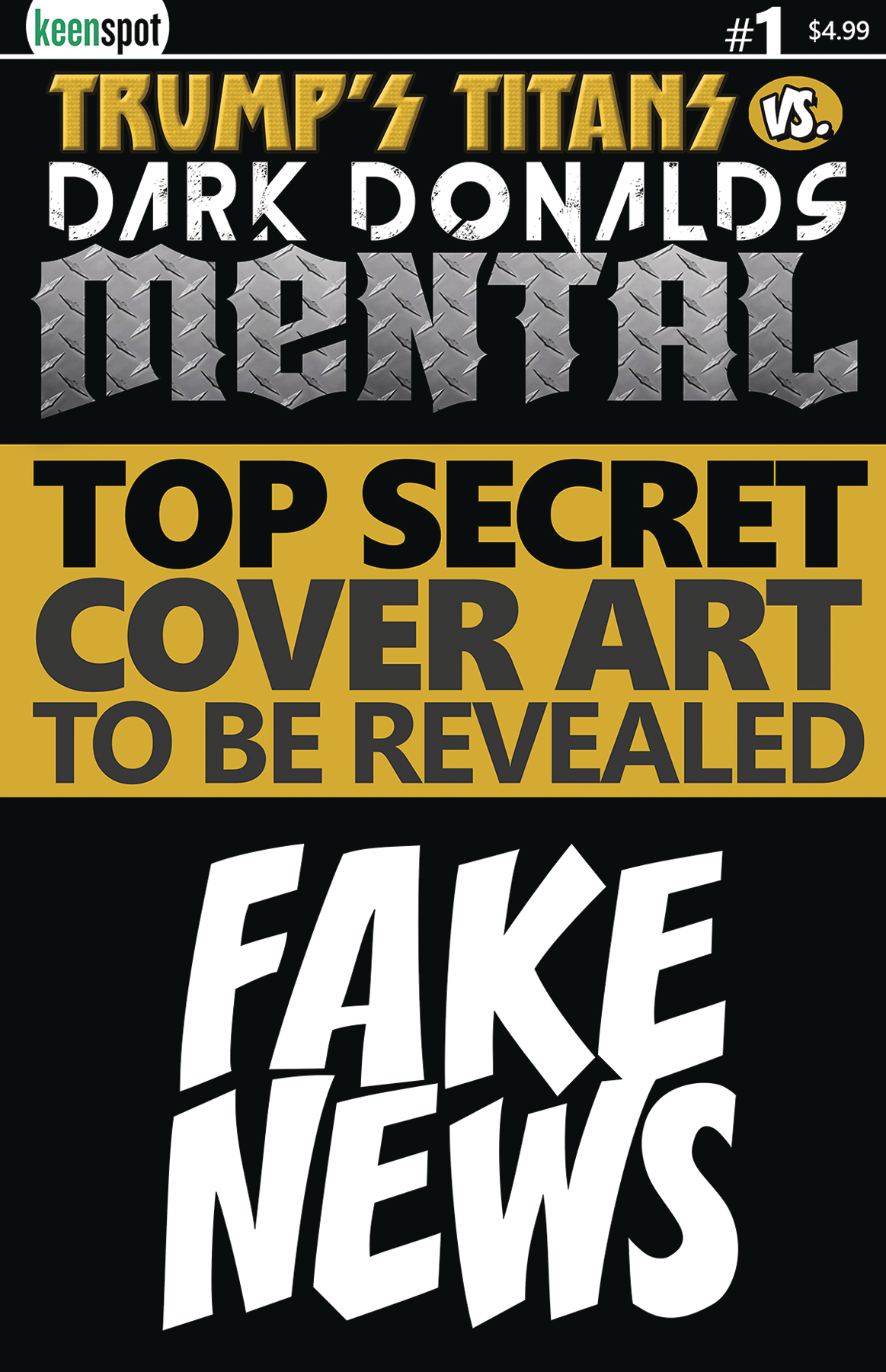 President Donald J. Trump is the most powerful superhero in the universe and the leader of the greatest super team in history ... but this very stable genius is about to go MENTAL! Donald's very good brain becomes, like, TOO smart -- so smart that it rips a hole in the fabric of the universe, creating portal to a dark multiverse that seven "Dark Donalds" enter through! It'll take the greatest Donald Trump in the multiverse to take down these Donnie Darkos... good thing he's on our side! The bestselling Trump comic book parody series of all time returns in an all-new #1, because #5s are for losers! Collect all seven Dark Donalds on variant covers B through H.