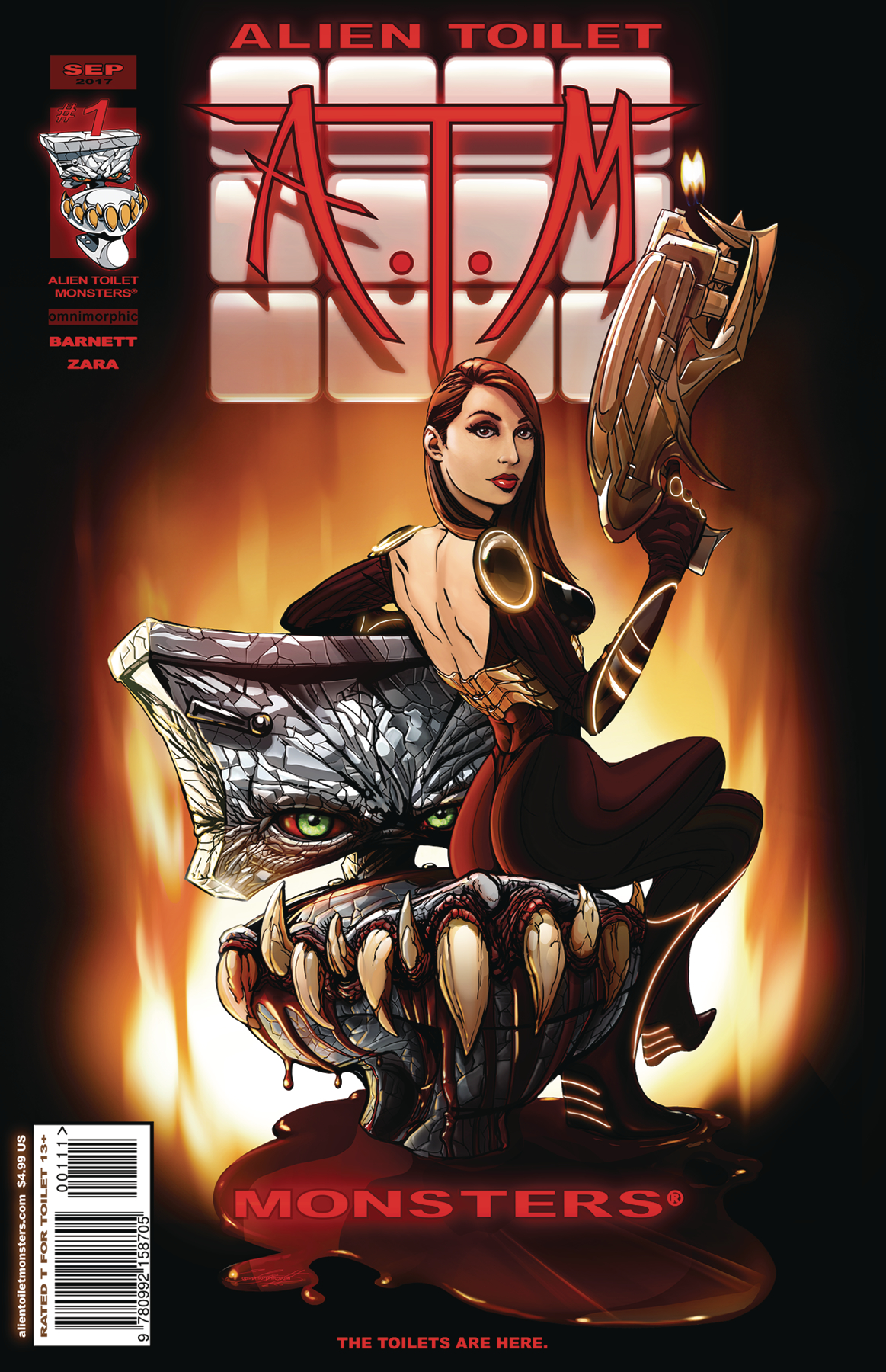 Alien Toilet Monsters is a densely packed mini series aimed at mature readers; it's best quantified as a nihilistic satire that shamelessly probes the underside of humanity. Poop jokes not included.