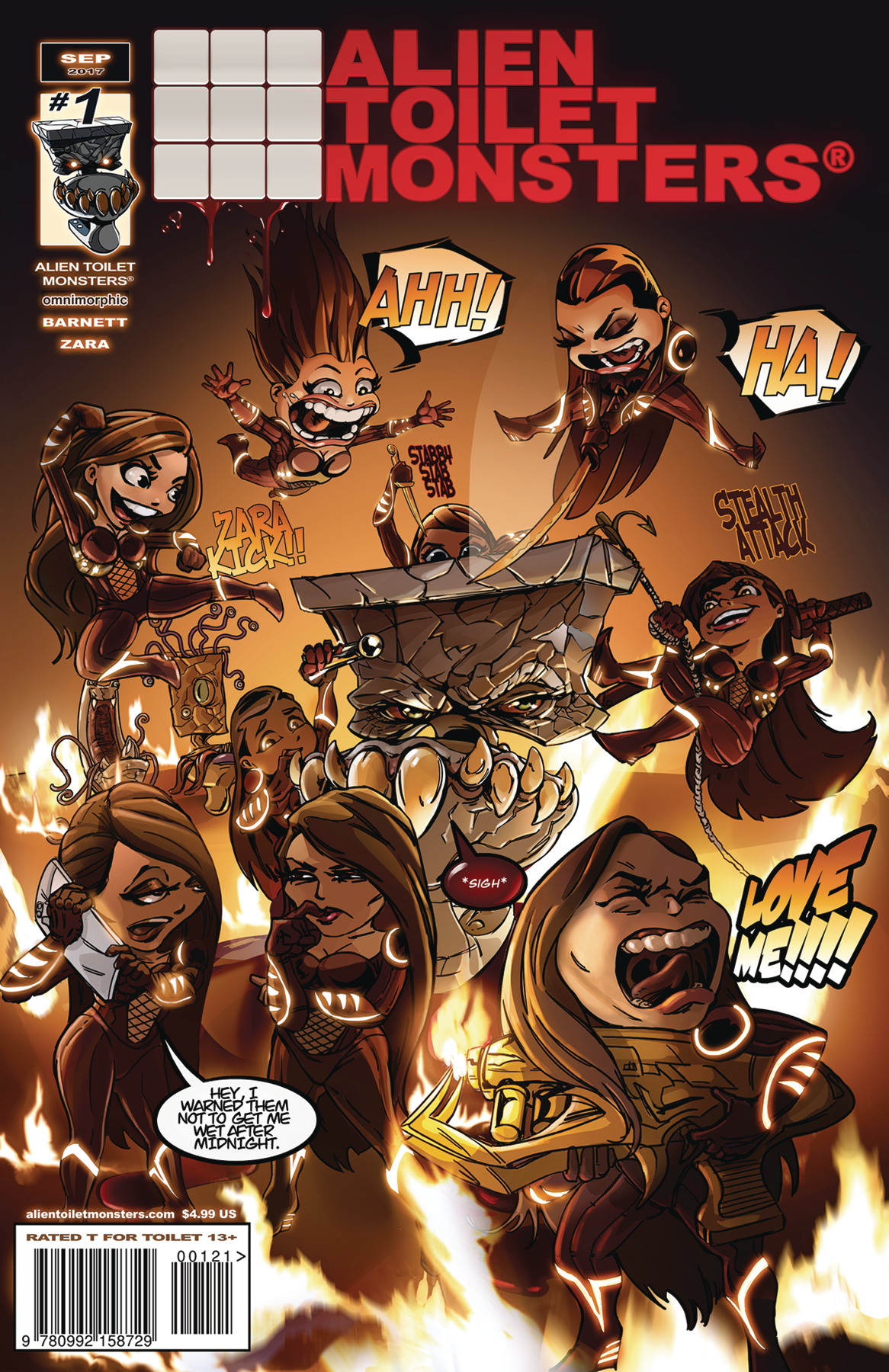 ALIEN TOILET MONSTERS® is a new series that finally answers the age old question: "are we alone in the universe?" The answer is both yes, and well, no. You see, it depends entirely on which universe you mean. Forbidden worlds, circular love triangles, and assuredly hard sci-fi, Alien Toilet Monsters is a densely packed mini series aimed at mature readers; it's best quantified as a nihilistic satire that shamelessly probes the underside of humanity. Poop jokes not included.