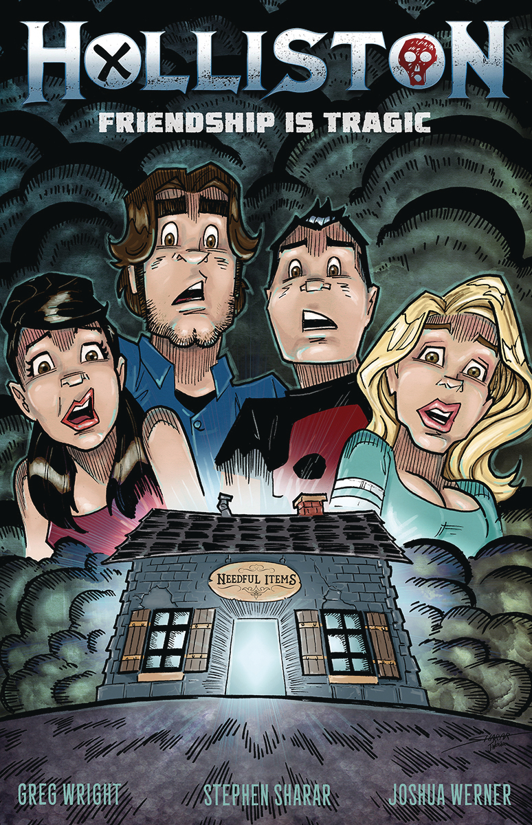 The beloved characters from the fan-favorite TV series Holliston are back in a brand new stand-alone adventure in their first graphic novel! Down on their luck wannabe filmmakers Adam and Joe want desperately to celebrate Halloween to the fullest, but their wallets say otherwise. When Adam finds a pre-paid credit card loaded with money, he decides to buy gifts for his friends Joe, Laura, and Corri from a mysterious shop full of rare items. Little does he know the card carried a terrible curse; one that will not only tear apart their friendships, but tear apart all of Holliston!