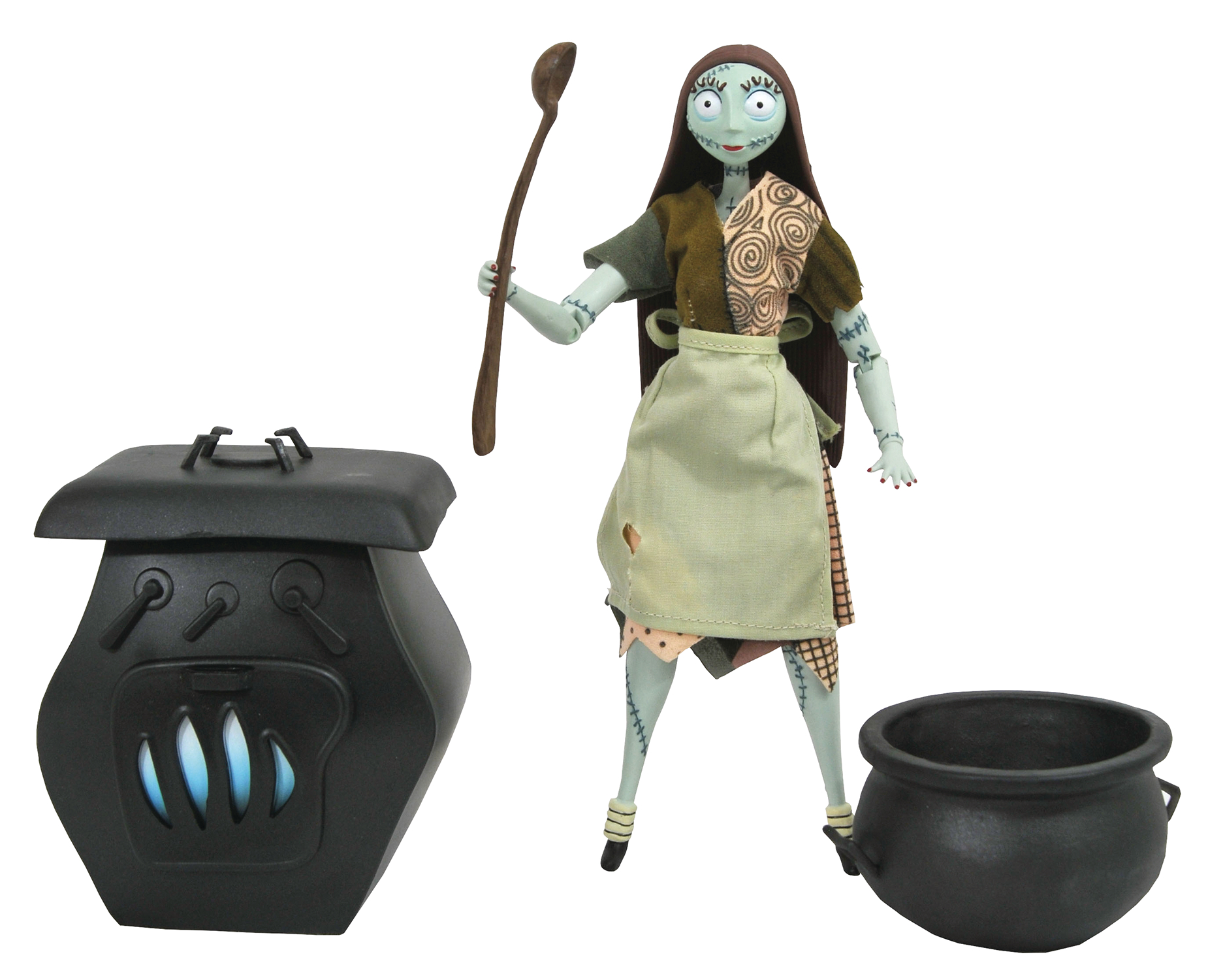 A Diamond Select Toys release! Tim Burton's The Nightmare Before Christmas is turning 25 this year, and Diamond Select Toys is celebrating with a new line of cloth-costumed, fully poseable action figures! Measuring approximately 10 inches tall, each figure features real fabric outfits, multiple points of articulation and character-specific accessories. Jack comes with a podium, the Mayor comes with a telescope, Pumpkin King Jack comes with a sign and torch, and Sally comes with her oven and cauldron! Each figure comes packaged in a coffin-shaped window box.