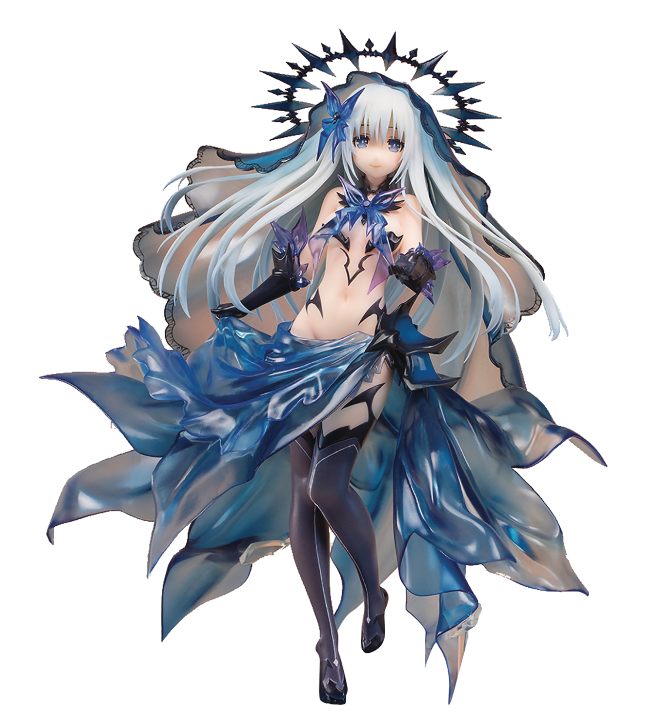 Date a Live II, comes a figure of the highly intelligent classmate of Shido who is athletic, beautiful, and the most famous person in Shido's school, Tobiichi Origami! This 1/7-scale figure features her in her Ehyeh Astral dress made from transparent parts for an elegant look. The figure stands about 9 3/4" tall and comes with a base for display.