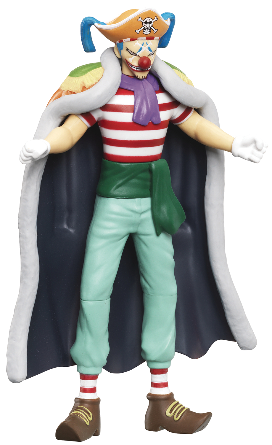 From Abysse America. In One Piece, Buggy ate the Bara Bara Fruit which allowed his body to split into several parts and have them flying separately. Similarly, the Buggy action figurine can be divided into several parts (through a slipcase system) and can be reconstituted. His head, legs and arms are interchangeable, and his head, arms and legs are articulated. Finally, his cape is removable! Ideal for fights against Luffy and his crew!
