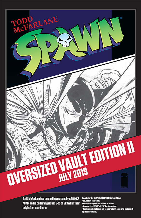 TODD McFARLANE has once again opened his personal vault to showcase SPAWN #8-15 in their original art board form! This new oversized SPAWN VAULT EDITION art board book will include never-before-published original art boards, plus a few extra surprises from series creator TODD McFARLANE-including the chance of a one-of-a-kind sketch by McFARLANE himself, which will be inserted into randomly selected books! Collects SPAWN #8-15.