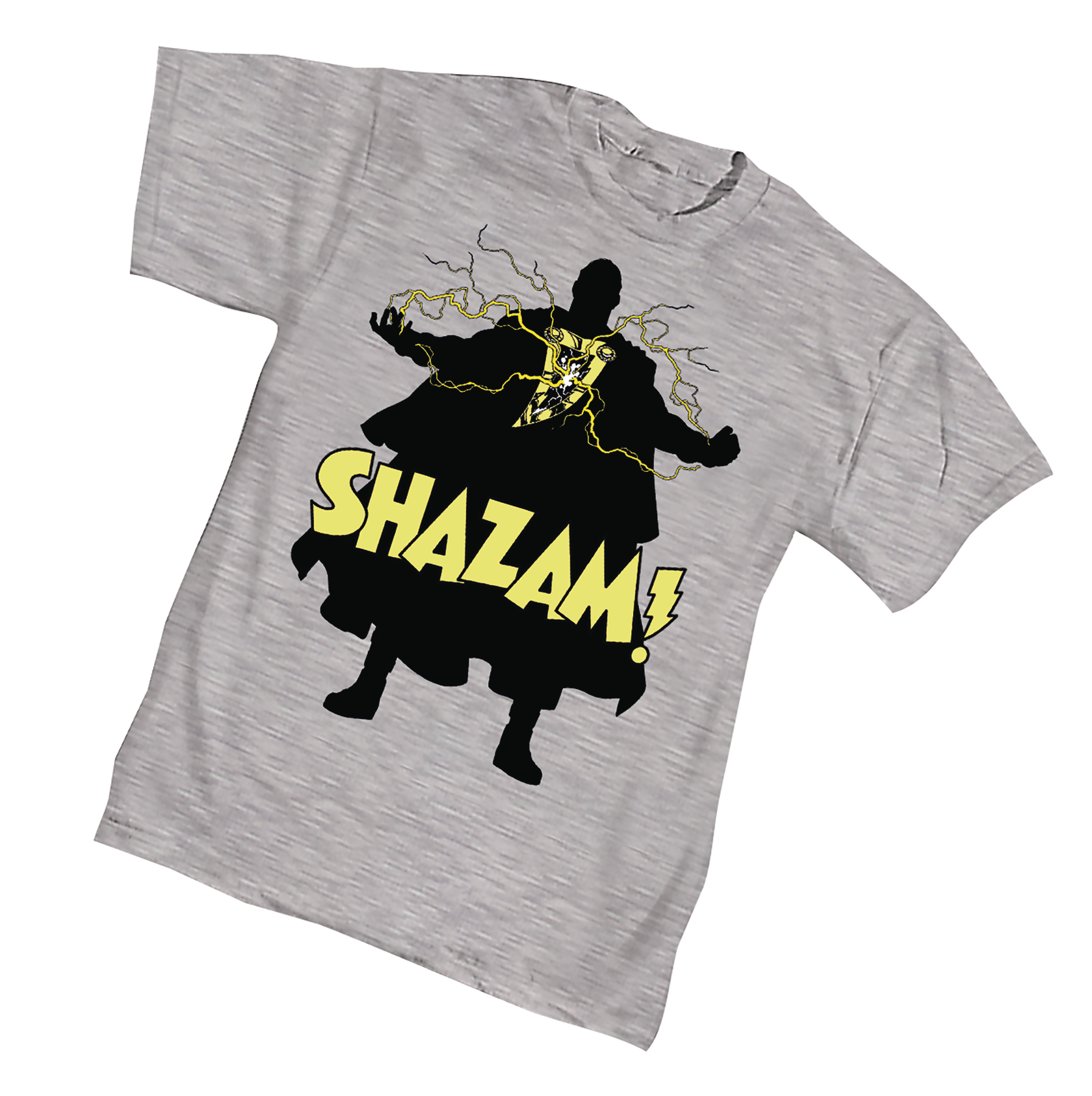 Shazam! returns on the new Shazam!: Silhouette T-Shirt. Features the power of Shazam! screenprinted in color on a light steel, 100% cotton shirts. Also note the availability of the Black Adam Metalix Symbol on a women's tee.
