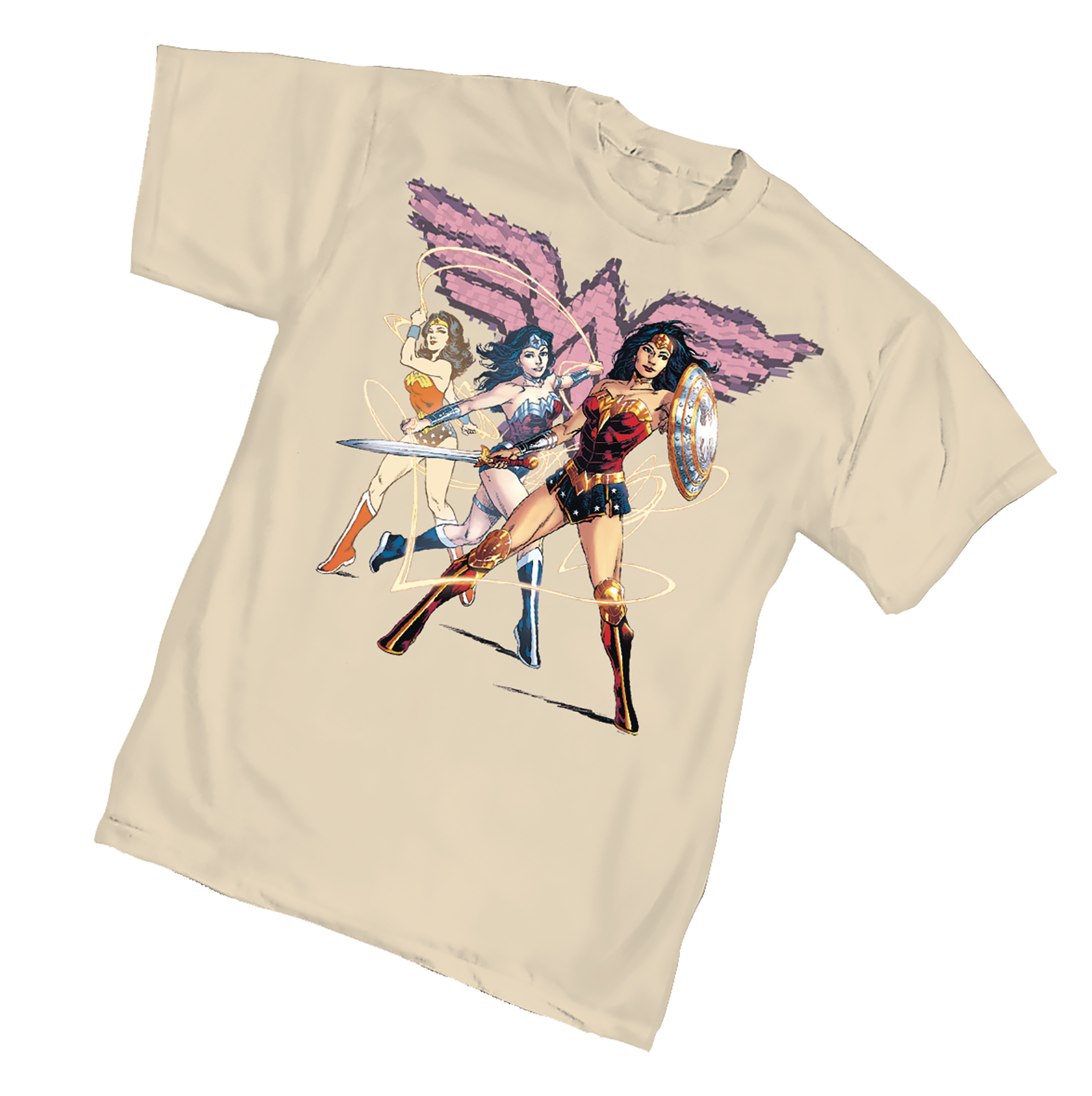 The Amazon nation shows its strength on the new Wonder Woman: Empowered T-Shirt. Features wonder women through the ages screenprinted in color on a heavyweight, natural, 100% cotton shirt.