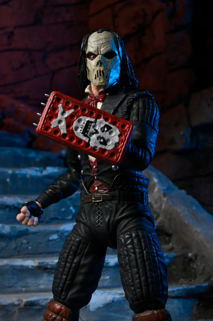 Universal Monsters x Teenage Mutant Ninja Turtles action figure starring Casey Jones! This continuing line pays tribute to the world's most famous turtles and Universal's icons of horror. Casey Jones as The Phantom reimagines the vigilante as the enigmatic and operatic man behind the mask who haunts the hockey rink! This 7" scale figure includes removable soft goods cloak, skull, hockey sticks, gloves, and interchangeable heads and hands. Comes in collector-friendly window box packaging with opening flap featuring an all-new illustration by Daniel Horne.