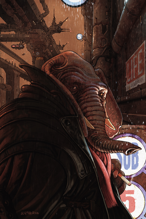 They were genetically engineered to be supra-human weapons of mass destruction, but now they must walk amongst the people they were created to destroy. Hip Flask and Ebony Hide count amongst their number: Elephantmen. Even when befriended by a small girl, Hide is still haunted by his past and is forced to recognize that suspicion and contempt will always be his constant companions.