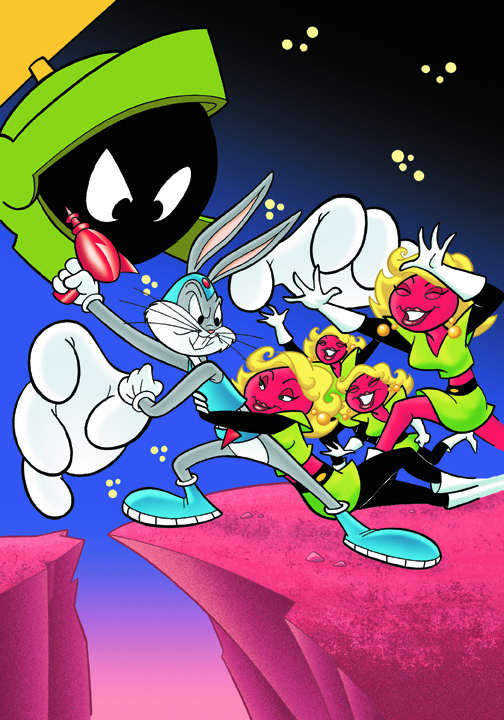 Written by Robbie Busch, Bill Matheny and Frank Strom Art by by Dave Alvarez, Omar Aranda, Scott Roberts, Mike DeCarlo, Alberto Saichann and Jorge Pacheco Cover by Scott Jeralds Marvin the Martian has transported Bugs Bunny to the deadly planet of the Glambots! How will Bugs escape...or resist their deadly charms? On sale July 5 32 pg, FC, $2.25 US