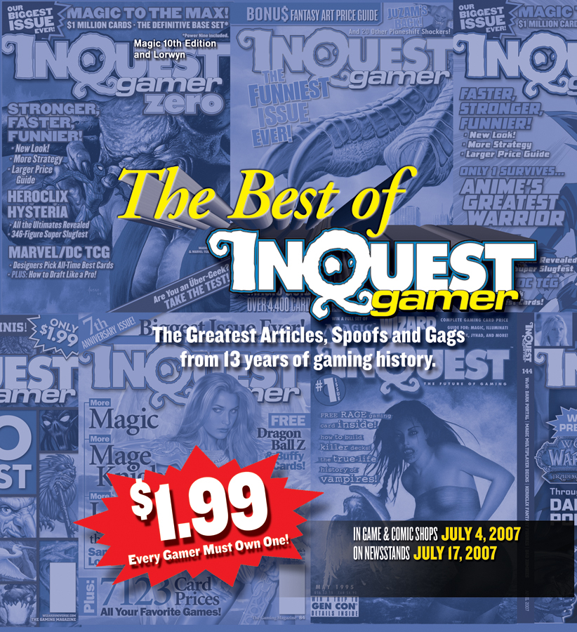 Twelve years, nearly 150 issues, more than seven trillion cards drawn and a billion clix clicked-plus some uncounted thousands of R&G and videogame critical hits after hours-all to put this great magazine together. And now, just before we hit the big 150, we're putting all those historic, must-read articles into a single issue. The coolest stories ever... the best "What If?" cards... the hottest gaming babes and loads of everything that makes InQuest the best value in gaming. If you only ever buy one issue of InQuest, this must be it.