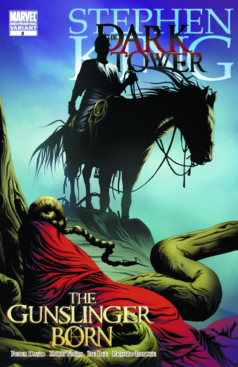 From Marvel Comics. A reprint of the sold-out second issue with a variant cover by Lee! Roland has incurred the wrath of the evil sorcerer Marten, and must flee his home in Gilead with two of his young friends. But arriving in the supposedly friendly town of Hambry may be no safer, for the dreaded agents of Marten are abroad, The Big Coffin Hunters! It's not completely bleak as Roland meets the woman who will become the love of his young life, the beautiful Susan Delgado. Scheduled to ship 08/08/2007. (161).