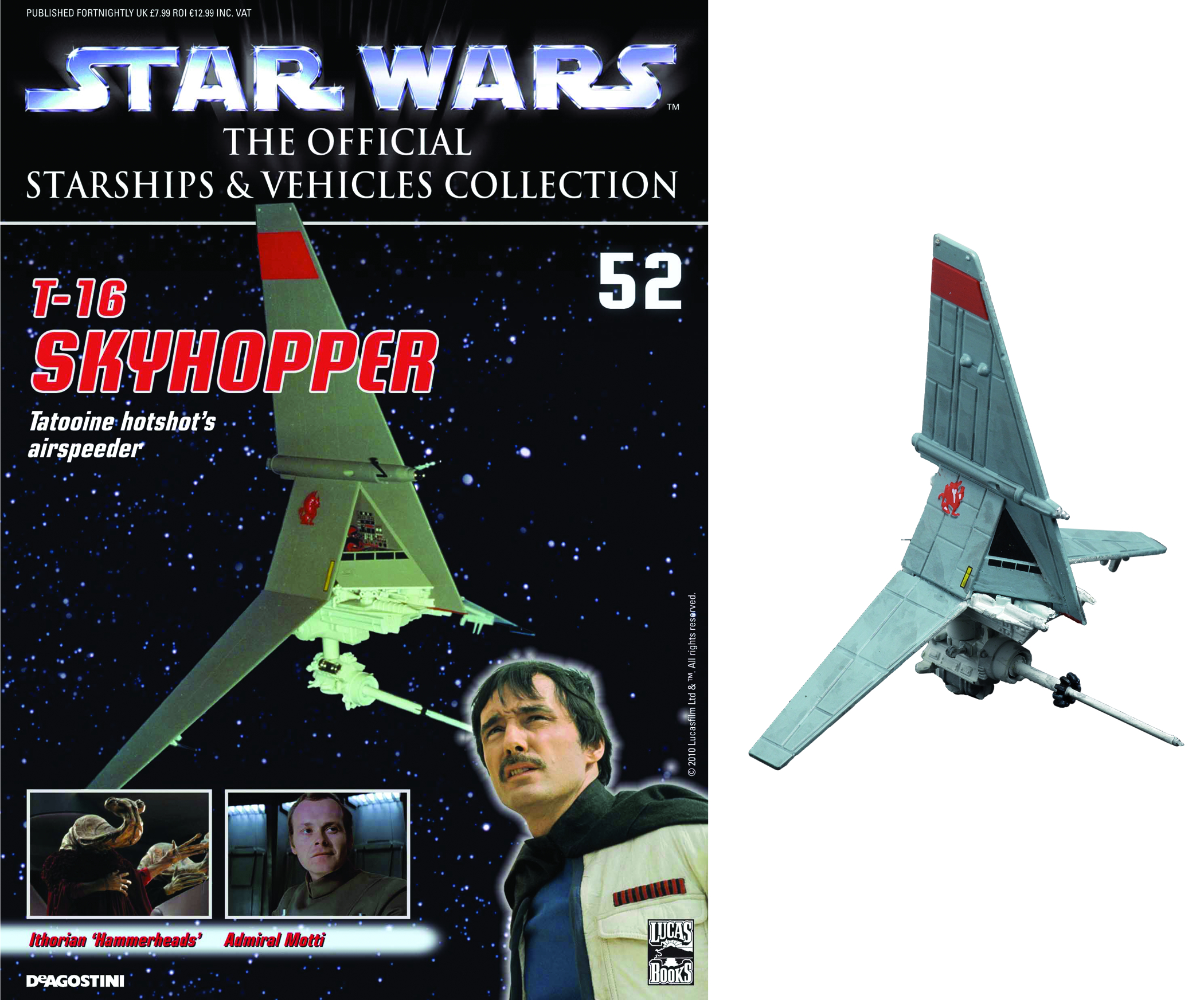 The Star Wars: The Official Starships and Vehicles Collection Magazine brings fans superbly detailed, painted metal models of the most amazing starships and land vehicles from George Lucas' mythic Star Wars films. Each comes with a copiously illustrated magazine that relates the history of the vehicle, its pilots or crew, and full technical specifications. Readers will also uncover information on the other fascinating craft from the Expanded Universe of the novels and comics, plus the inside story on the making of the films. Choose from the AT-TE Walker (#25), the Sandcrawler (#26), the Alliance Tank Droid (#51), and the T-16 Skyhopper (#52). This month, collectors can also fill in gaps in their collection with the Death Star II (#9), the Snowspeeder (#10), the ARC-170 Starfighter (#35), or the Naboo Queen Royal Starship (#36).