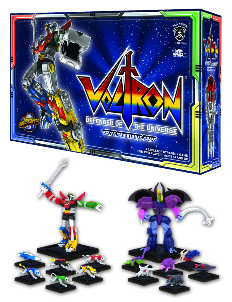 Voltron is a stand-alone miniature strategy board game where players take control of the mighty Voltron: Defender of the Universe or the fiendish robeast Lo-tron and each monster's armada of spaceships as they battle across two different interactive maps. Players launch searing energy blasts, smash their opponent into rogue asteroids, and form Blazing Sword as they reenact their