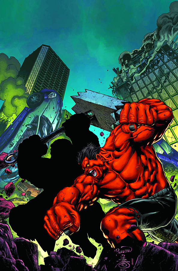 As the hammer-wielders continue their campaign of fear and terror, Red Hulk takes up arms against the newly deified XXX XXXXX! It's bruiser versus bruiser as two of the world's strongest battle it out in an all-out brawl that will shake the world! And no one is watching this closer than M.O.D.O.K.!