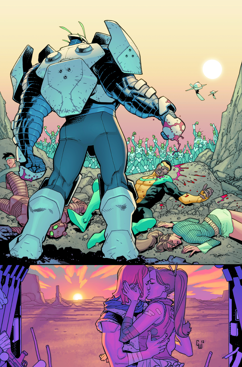 The new Invincible faces defeat at the hands of the Flaxan Army! The Guardians of the Globe have fallen! What is Monster Girl and Robot's part in all this? How are they responsible? More of their past in the Flaxan dimension is revealed. And where is Mark Grayson during all this?