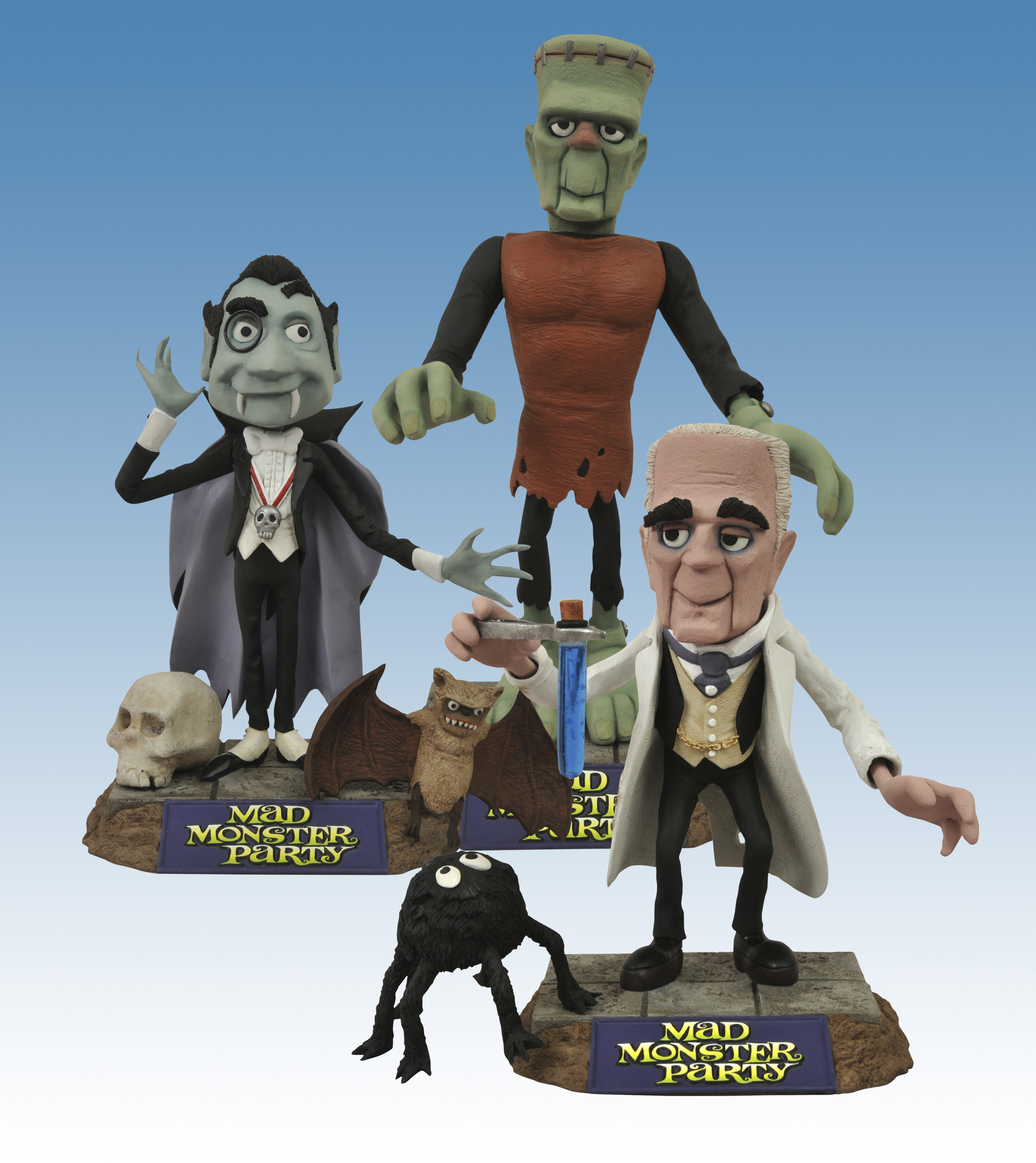 A Diamond Select Release! Sculpted by Tony Cipriano! The classic Rankin/Bass holiday film is back from the grave! Featuring the iconic stop-motion animation of Rankin/Bass and starring every famous monster you can think of, Mad Monster Party roared into theaters in 1967 and has been a cult classic ever since. Now, the film gets the toy treatment it deserves with movie-accurate action figures of The Baron, Fang and Dracula! Each 7-inch scale figure includes a display base and movie-accurate accessories, and comes in its own display-ready collector packaging.