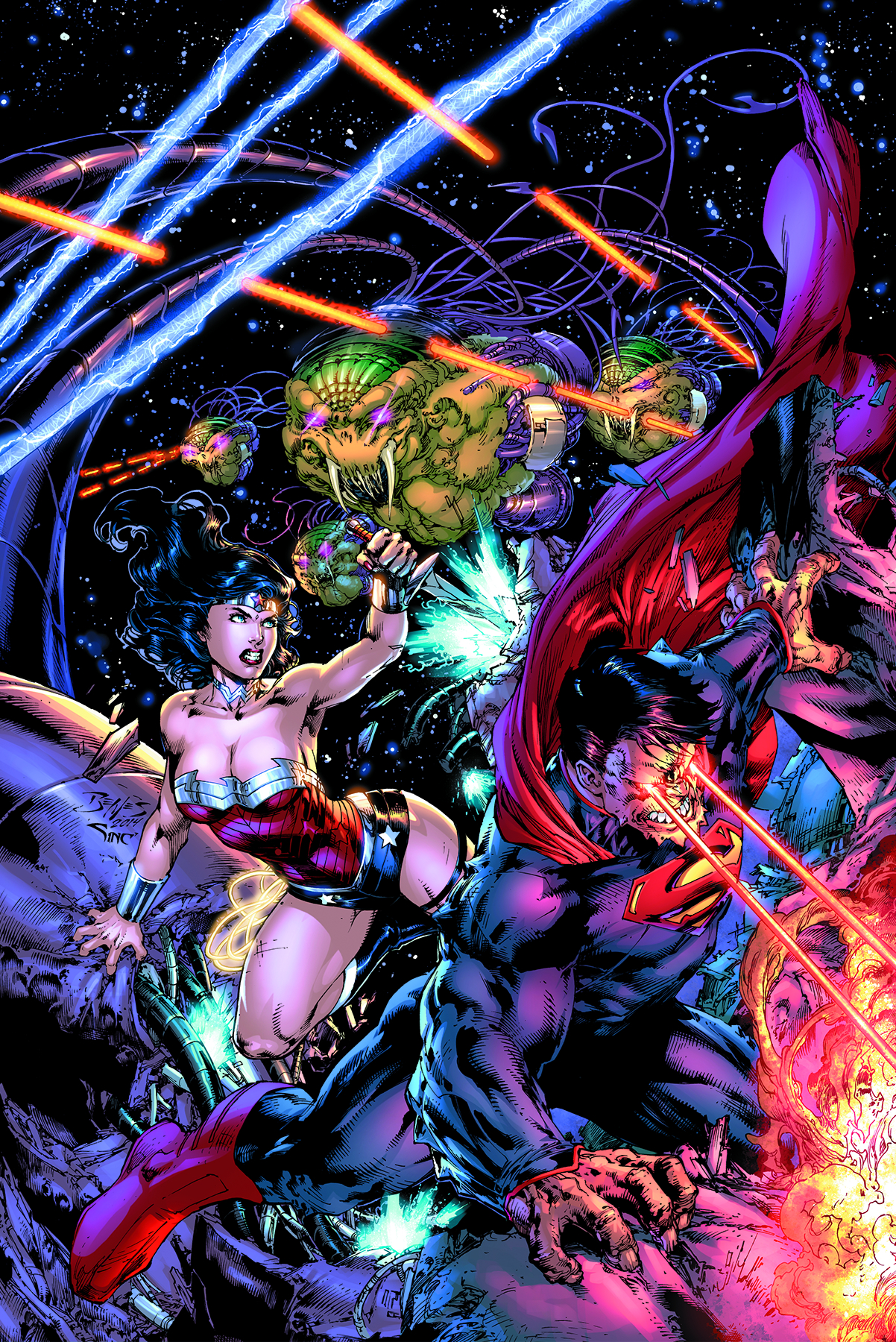 Only an Annual could contain this chapter of "SUPERMAN: DOOMED"! It's an all-out assault by the heroes of Earth (superpowered and not) on the God of War, Wonder Woman, who's leading the charge against all manner of alien attackers. The monstrous Superman smashes through everything friend or foe as his de-evolution reaches a critical stage. It all leads to their best hope: the Phantom Zone?!