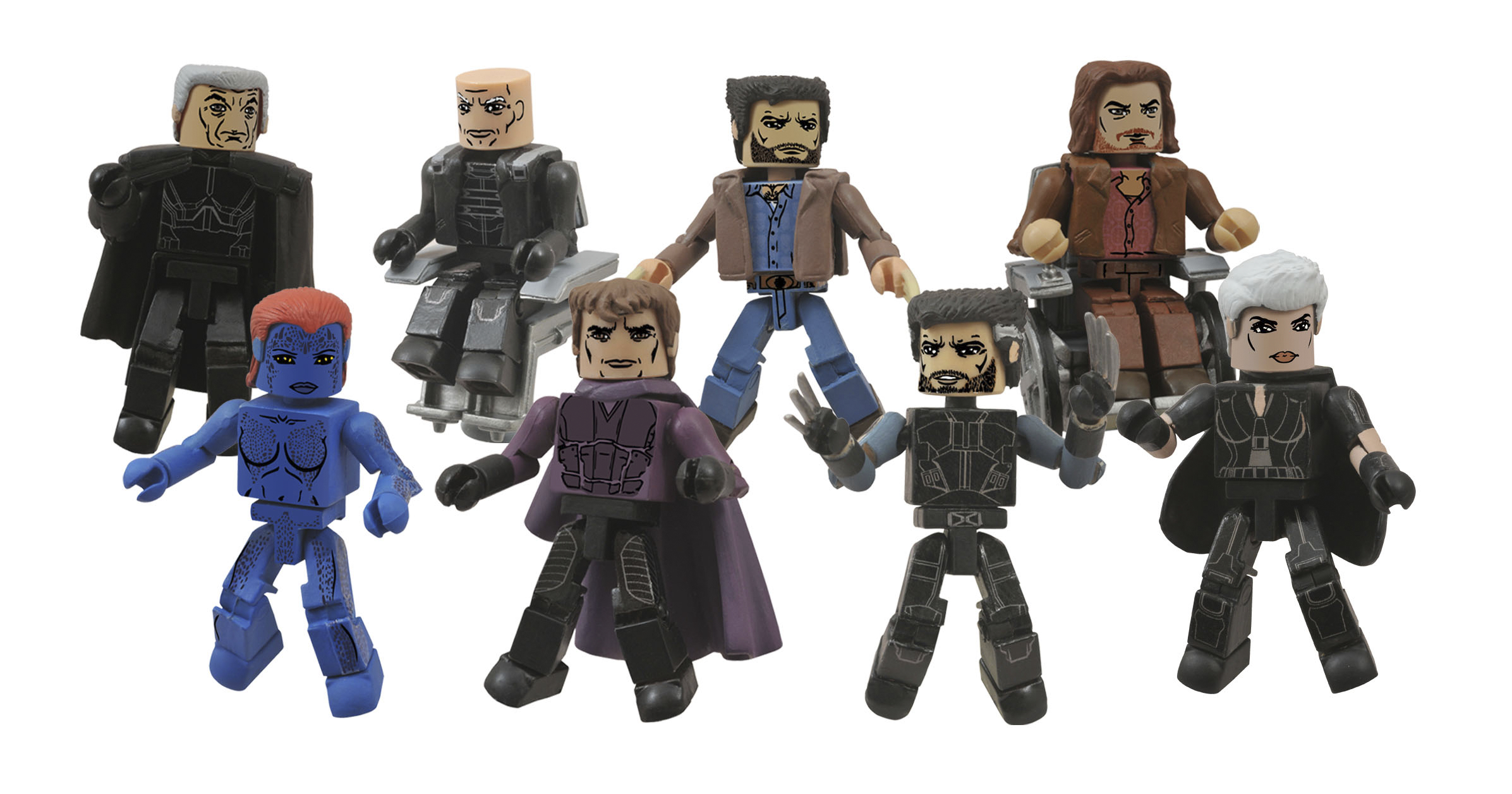 A Diamond Select Release! The newest and most epic X-Men movie ever made is getting the Minimates treatment from DST! Four different two-packs depict the past and future worlds of X-Men: Days of Future Past, featuring Future Professor X with Past Magneto, Future Magneto with Past Mystique, Future Wolverine with Future Storm and Past Logan with Past Charles Xavier. Each Minimates mini-figure stands 2 inches tall with 14 points of articulation and features a variety of interchangeable parts and accessories. Designed and Sculpted by Art Asylum!