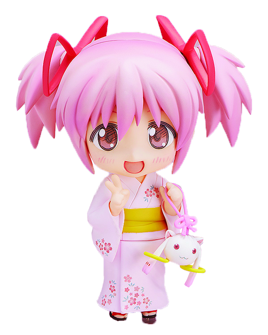 Madoka Kaname wearing a yukata! Optional parts include a smiling expression and an embarrassed expression, as well as a Kyubey pouch and a floral hairpin. She's cuter than ever before, dressed up in her yukata and ready for fans to enjoy her company!
