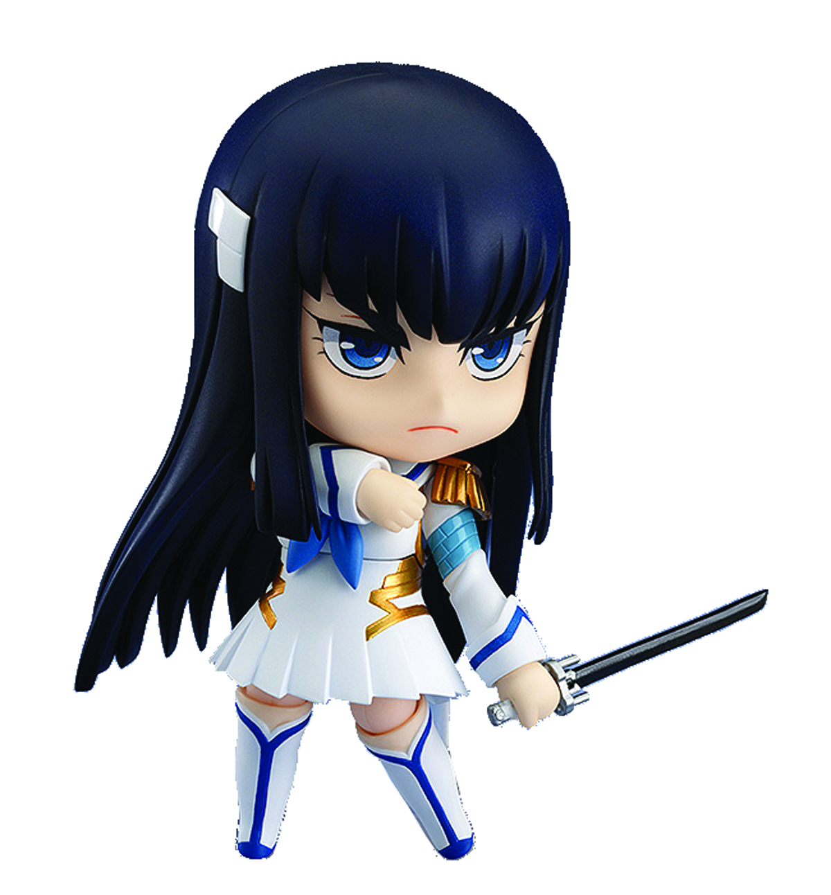 Satsuki Kiryuin, Honnouji Academy's Student Council president who rules through unquestionable force and fear. She comes with both her standard confident expression, a powerful shouting expression as well as her beloved sword "Bakuzan" in both sheathed and unsheathed forms. A special stand is also included, resembling the rooftop of Honnouji Academy, where she often stood and looked down upon the other students. Be sure to display her with the Nendoroid Ryuko Matoi and Nendoroid Mako Mankanshoku to recreate all sorts of scenes from the series!