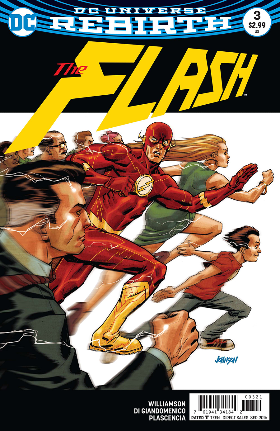 "LIGHTNING STRIKES TWICE" Chapter Three: In issue #3, dozens of innocent people mysteriously gain super-speed! But not all are heroic, and it'll take everything The Flash and August have to harness the lightning before Black Hole does.