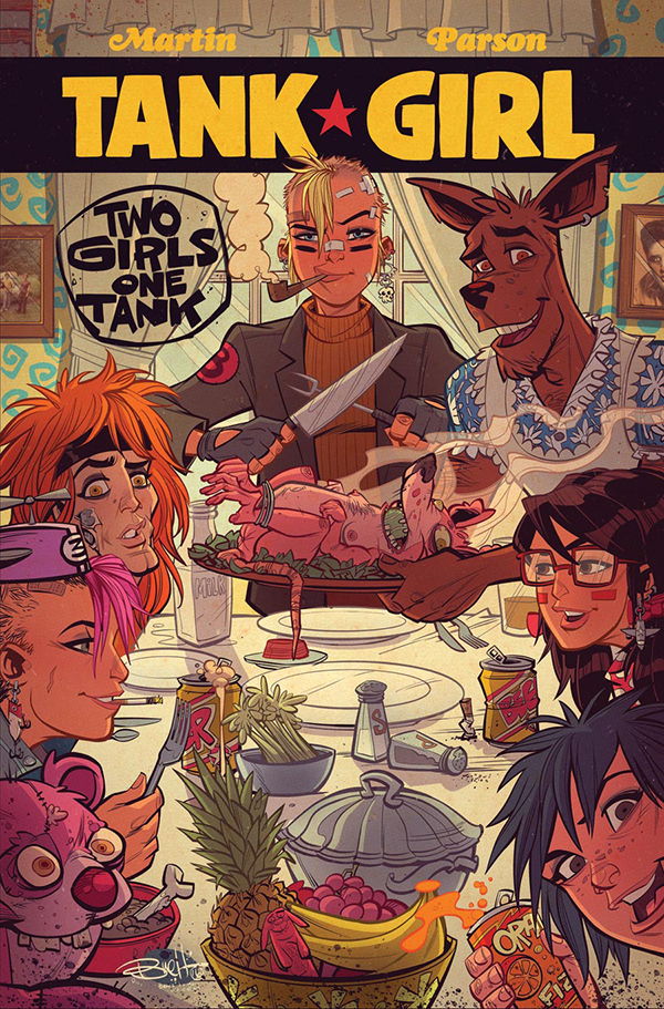 With the gang back together, what better way to celebrate than breaking out the big guns and shooting the crap out of a heavy-metal militia? How about all that plus cake? It's welcome home parties - Tank Girl style!