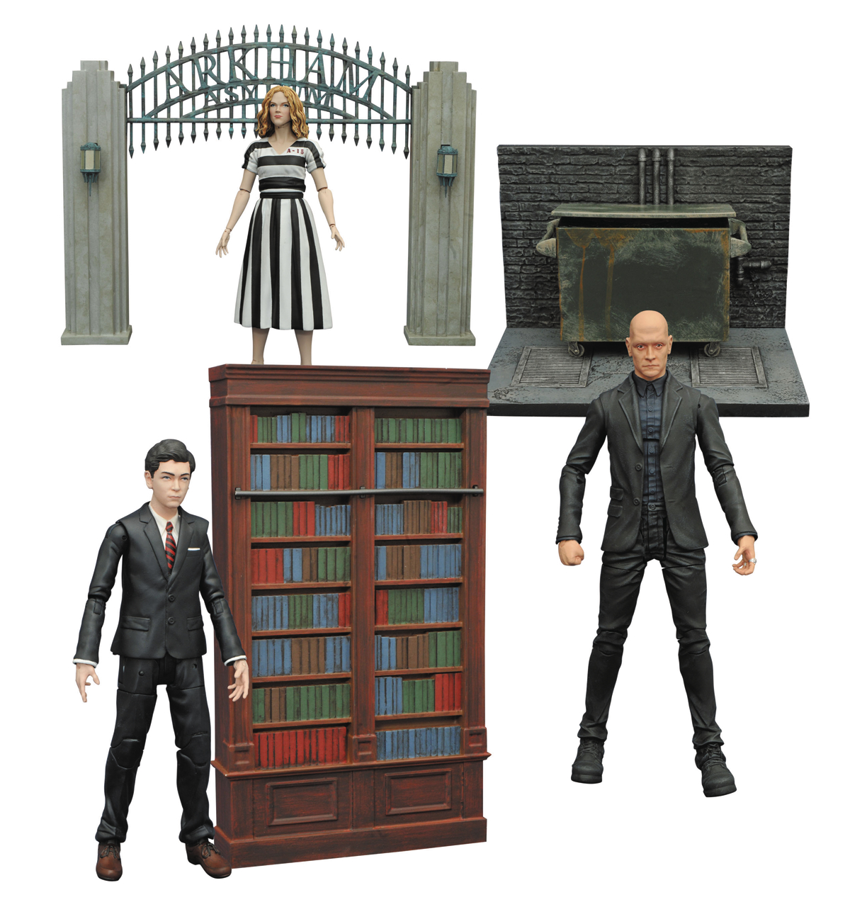 Gotham Select action figure line just in time to be menaced by the combined villainy of notorious enforcer Mr. Zsasz and Jim Gordon's ex-fiancee, the murderous Arkham inmate Barbara Kean! Bruce comes with a bookcase form Wayne Manor, while Zsasz comes with an alleyway diorama with dumpster and Barbara comes with the entrance to Arkham Asylum! Each 7-inch scale action figure features up to 16 points of articulation, and comes packaged in display-ready Select figure packaging with spine artwork for easy shelf reference. Sculpted by Gentle Giant!