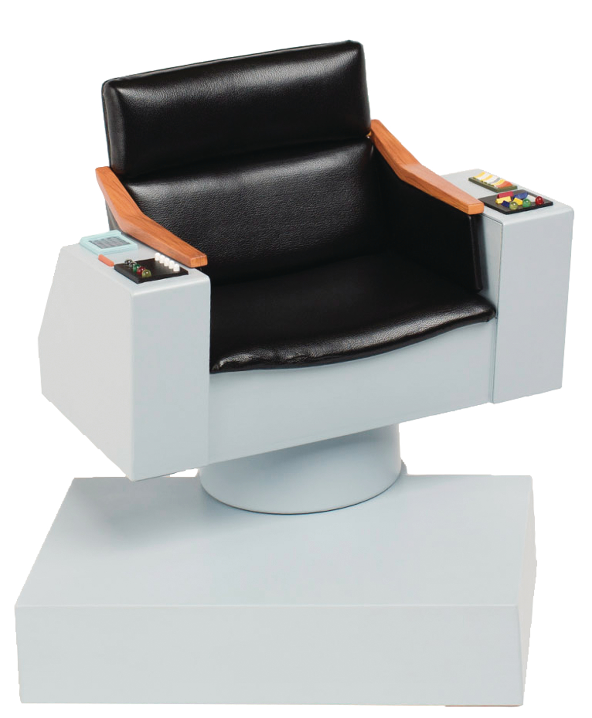 Star Trek 1/6-scale collectible figures in mind, this replica of the most famous chair in TV history is authentically styled after the original set prop. It features multiple light and sound configurations and swivels on its base just like the full-size prop. Powered either by two AA batteries (not included) or through a USB plug (cord not included), this Captain's Chair replica has four different light and sound display settings. Display this classic TV icon either with the QMx 1/6-scale James T. Kirk collectible figure or on its own: it is an instantly recognizable collectible that will be the perfect desk display for any discerning