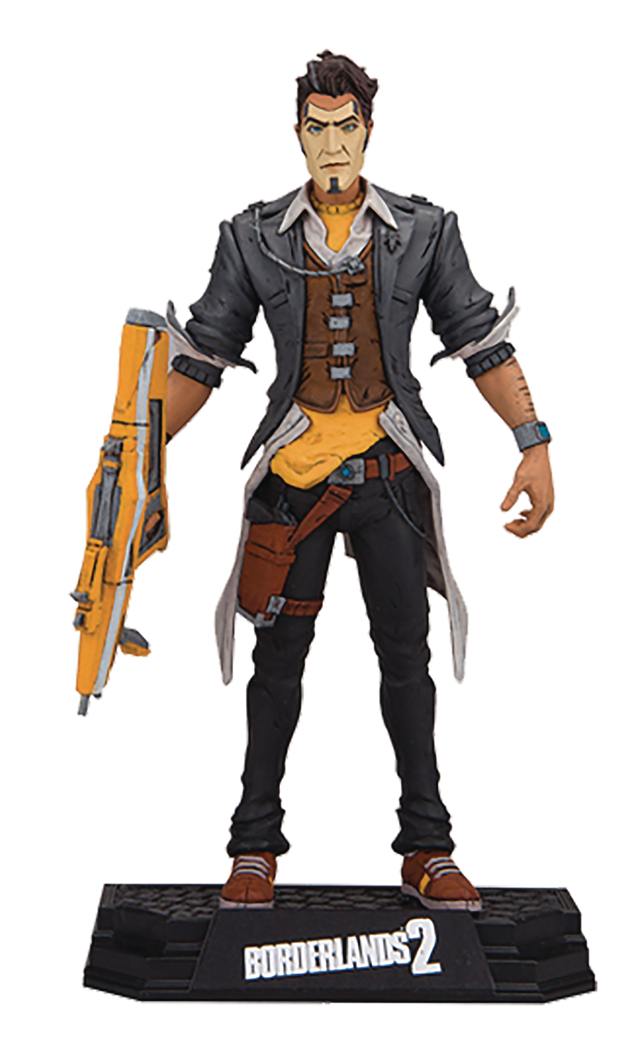 After taking over the Hyperion corporation, Handsome Jack declared himself dictator of Pandora, and takes full credit for finding The Vault. Nestled in his geostationary "H-shaped" moon base, Jack can send supplies and troops down to Pandora, and most importantly can keep an eye on Vault Hunters at all times. This highly detailed sculpt of the Handsome Jack is modeled from in-game assets and comes complete with Hyperion assault rifle and vault key. Designed with 12+ points of articulation for dynamic posing, the figure includes an alternate scarred head and a stylized