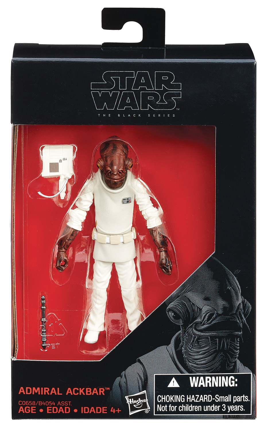 From Hasbro. The latest additions to Hasbro's detailed 3-3/4" Star Wars Black action figure series include Ackbar, Ahsoka, Emperor guard, Gen Calrissian, Seal leader, & Shark trooper.