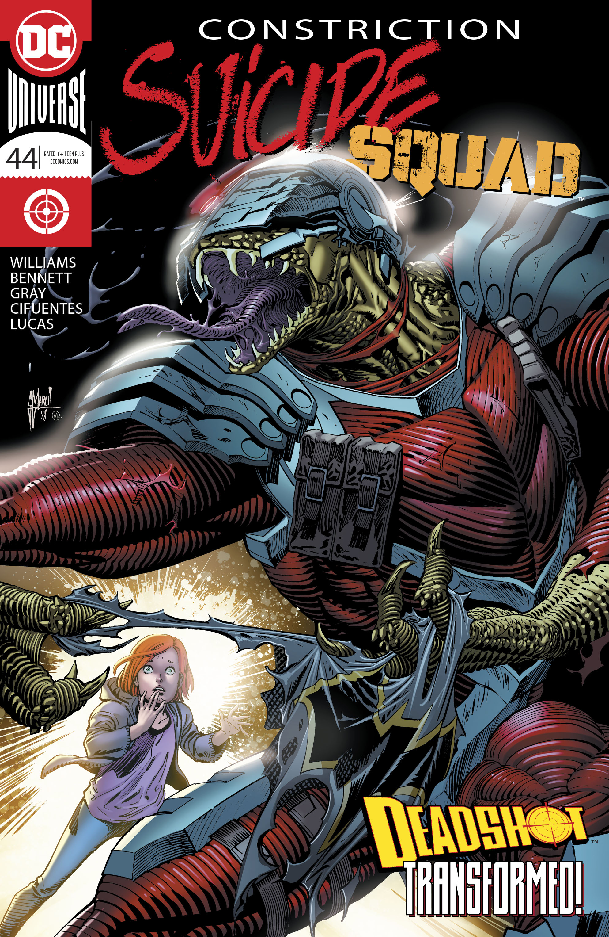 Guest-starring Batman! The noose tightens on the Squad in part four of "Constriction," and someone may be dancing at the end of a rope before it's all said and done. The murderous Kobra is looking to put the squeeze on Deadshot's daughter, Zoe. Even with the Dark Knight's backup, will the Squad be ready for Kobra's bait-and-switch?