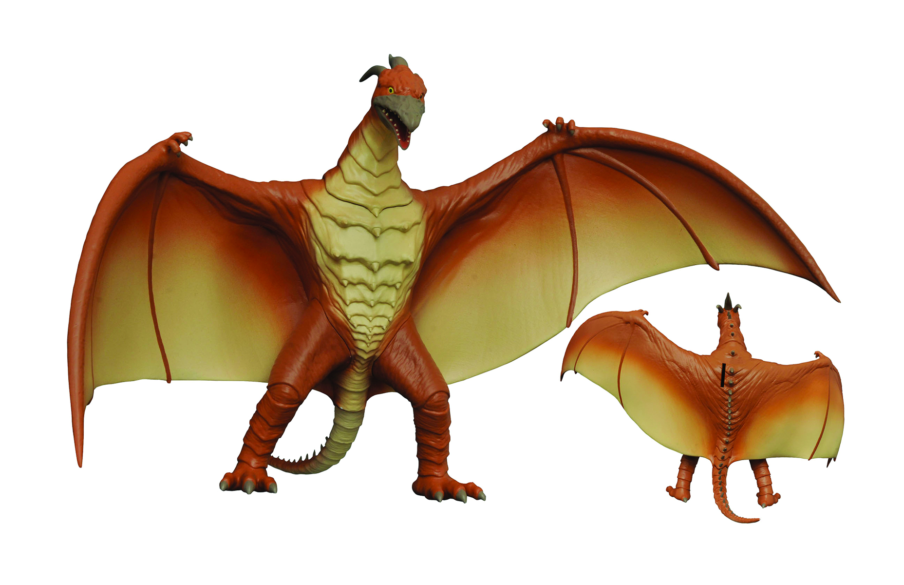 A Diamond Select Toys release! Whether you be a friend, foe, or Godzilla himself, beware the coming of Rodan! The giant winged pteranodon began his film career as a threat to Godzilla and the world, but since then has become one of Godzilla's occasional allies, battling invaders from outer space to protect his home planet. This 8" vinyl bank is based on Rodan's appearance in 1993's Godzilla vs. MechaGodzilla II, and has a wingspan of 10 inches! With a coin slot on the back and a removable head, you'll be able to save your change for the next Godzilla bank release! Sculpted by Gentle Giant Studios! Now in full-color window box packaging!