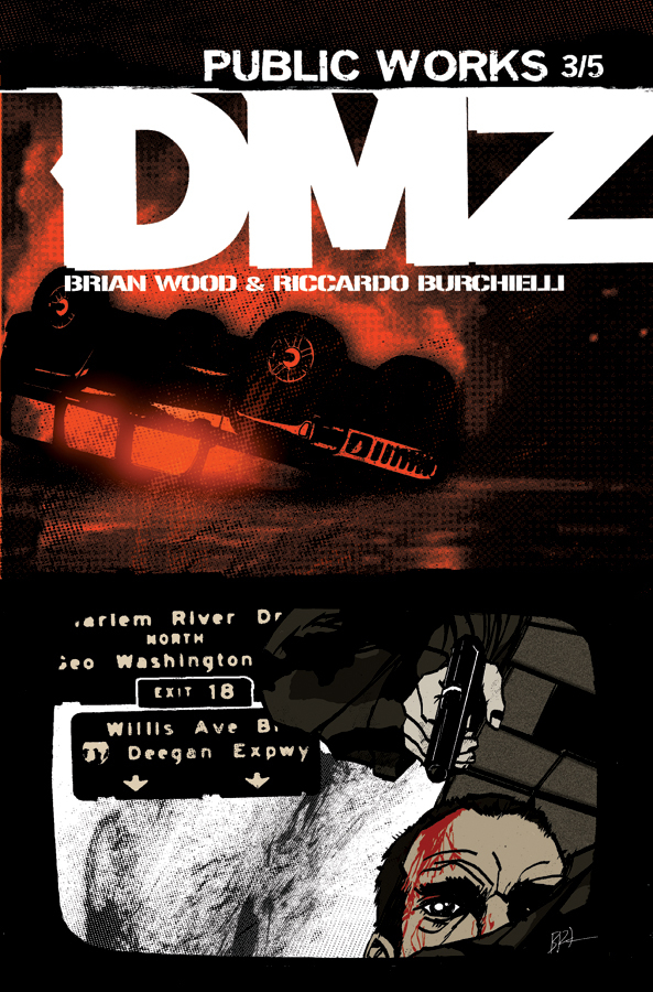 "Public Works," Part 3 of 5. Matty risks his undercover status by foiling a terrorist cell's suicide bombing operation, thus turning away the mysterious girl who'd been helping him. Meanwhile, he uncovers who the terrorist's main backers are, and once again realizes that things are never what they seem in the DMZ.