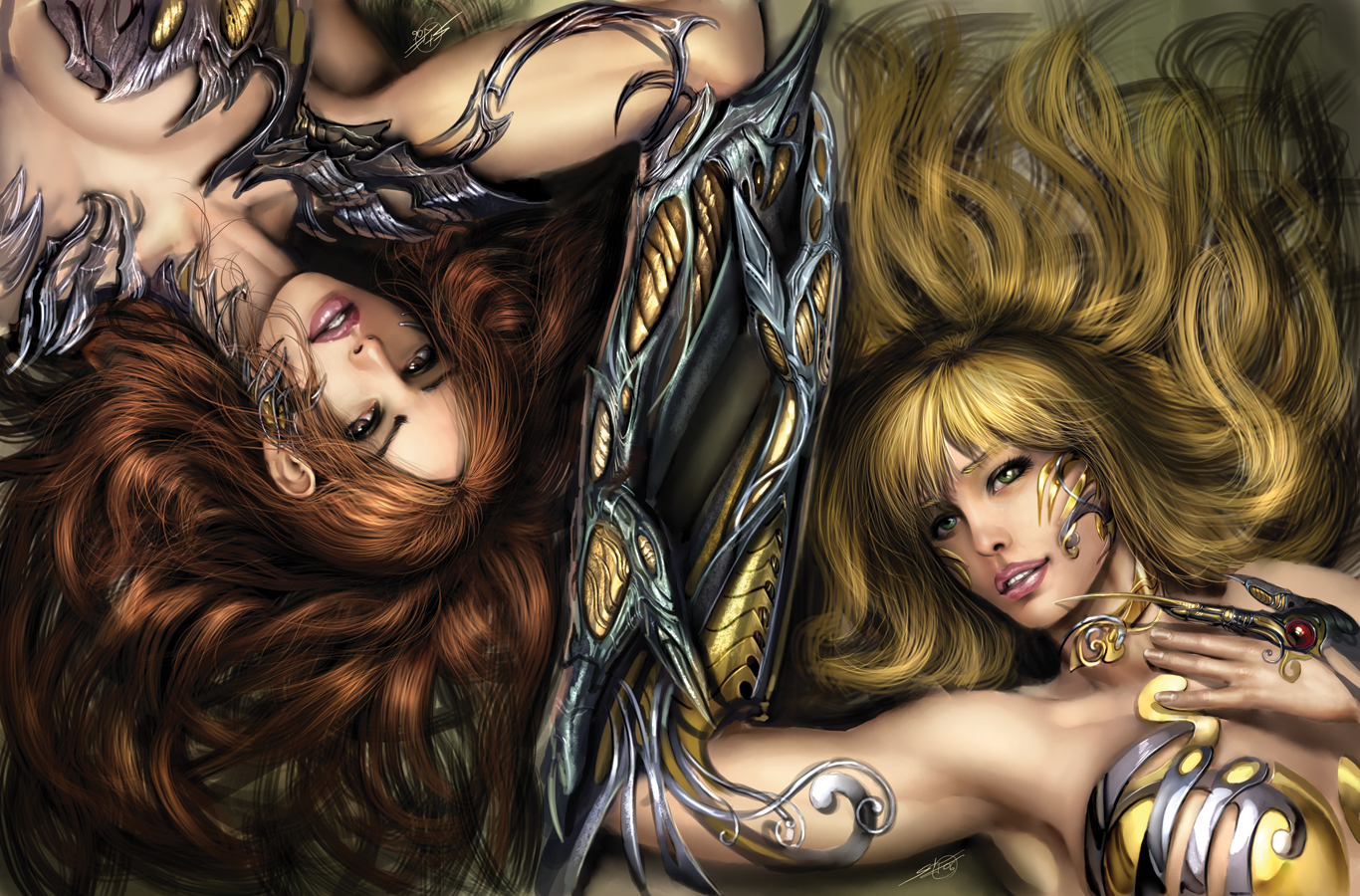 Ron Marz (Green Lantern, Cyberforce) and Croatian sensation Stjepan Sejic (Darkness/Wolverine, Kade) team up to bring you a lush tale of danger and beauty. And two ARE better than one when you can get both pieces of a painted two-part cover by Sejic! Two heroines, two stories, two covers - that's a killer combo!