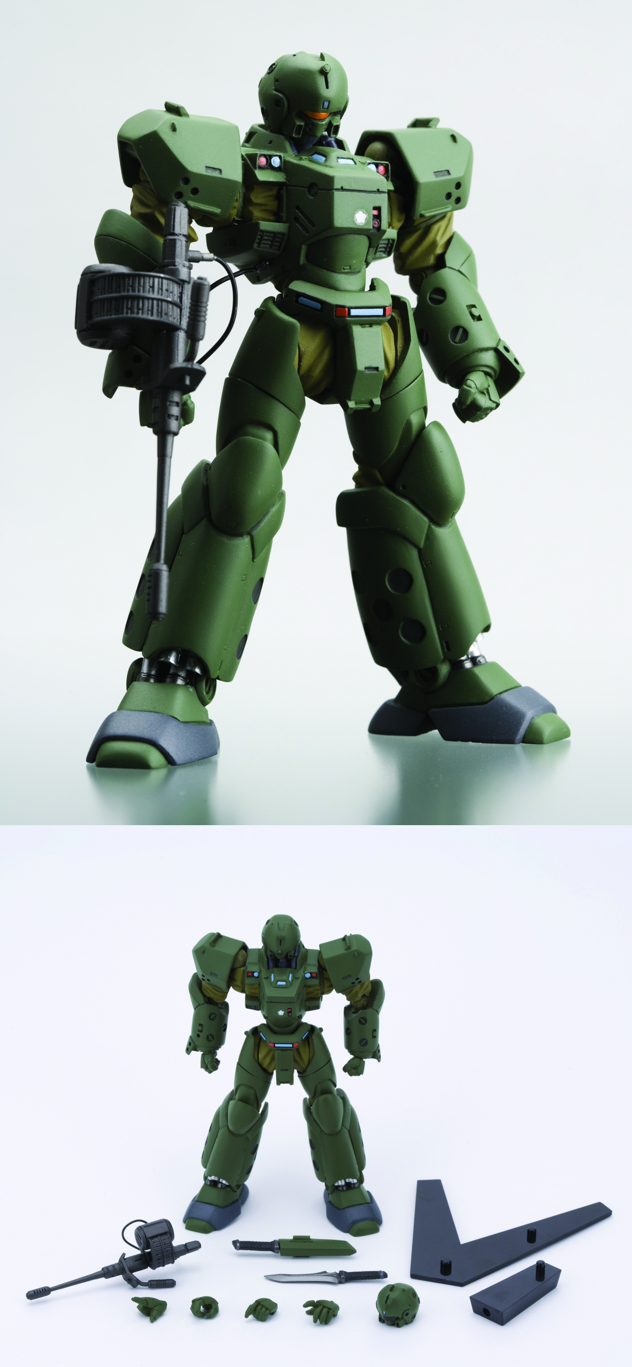 Patlabor, Mobile Police, directed by Naoyuki Yoshinaga. This Revoltech jointed figure stands over 5" tall and features multiple articulation points. Revoltech Helldiver comes equipped with interchangeable weapons, heads and a set of interchangeable hands.
