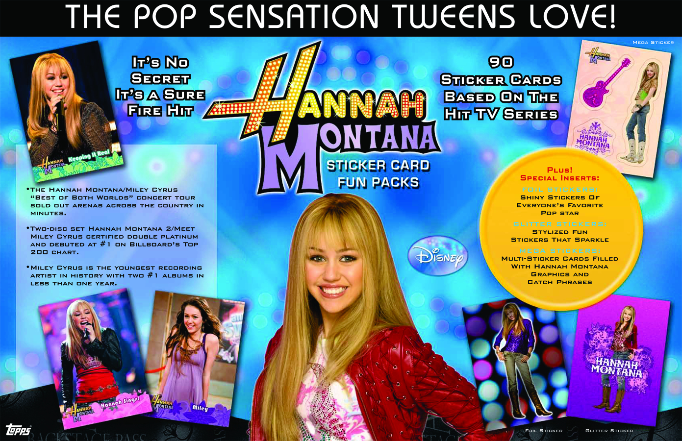 Hannah Montana Stickers, releasing in time to capitalize on the release of her own 3-D concert movie when it hits thousands of theaters the first week in February! With 90 stickers based on the hit Disney show, each pack contains 6