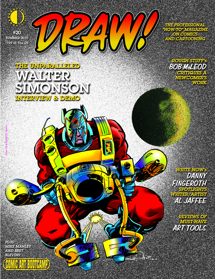 Draw, the professional "how-to" magazine on comics and animation, gets unprecedented access with comics icon Walter Simonson as he takes readers into his studio for an interview and a demonstration of his working process. Also, pro inker Bob McLoed presents another of his regular "Rough Critiques" of a newcomer's work, and
