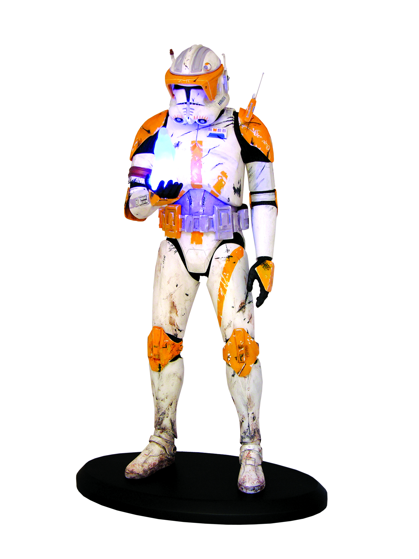 Imported from France! Always at the side of Obi-Wan Kenobi as the Galactic Republic fought for its very existence against the Separatists during the Clone Wars, Commander Cody was as loyal and devoted to the Republic cause as a clone trooper could be - until the moment that Supreme Chancellor Palpatine issued Order 66 and latent programming activated and turned the galaxy's clones into weapons against their Jedi guardians. This 1/5-scale statue that stands 15 3/4" tall from Attakus captures Commander Cody in the thrall of "Order 66," where he stands on the precipice of fate itself. This statue comes with working lights that require 3 LR41 watch batteries (included). Limited to 750 pieces, Commander Cody is made of polystone and comes with a Certificate of Authenticity.