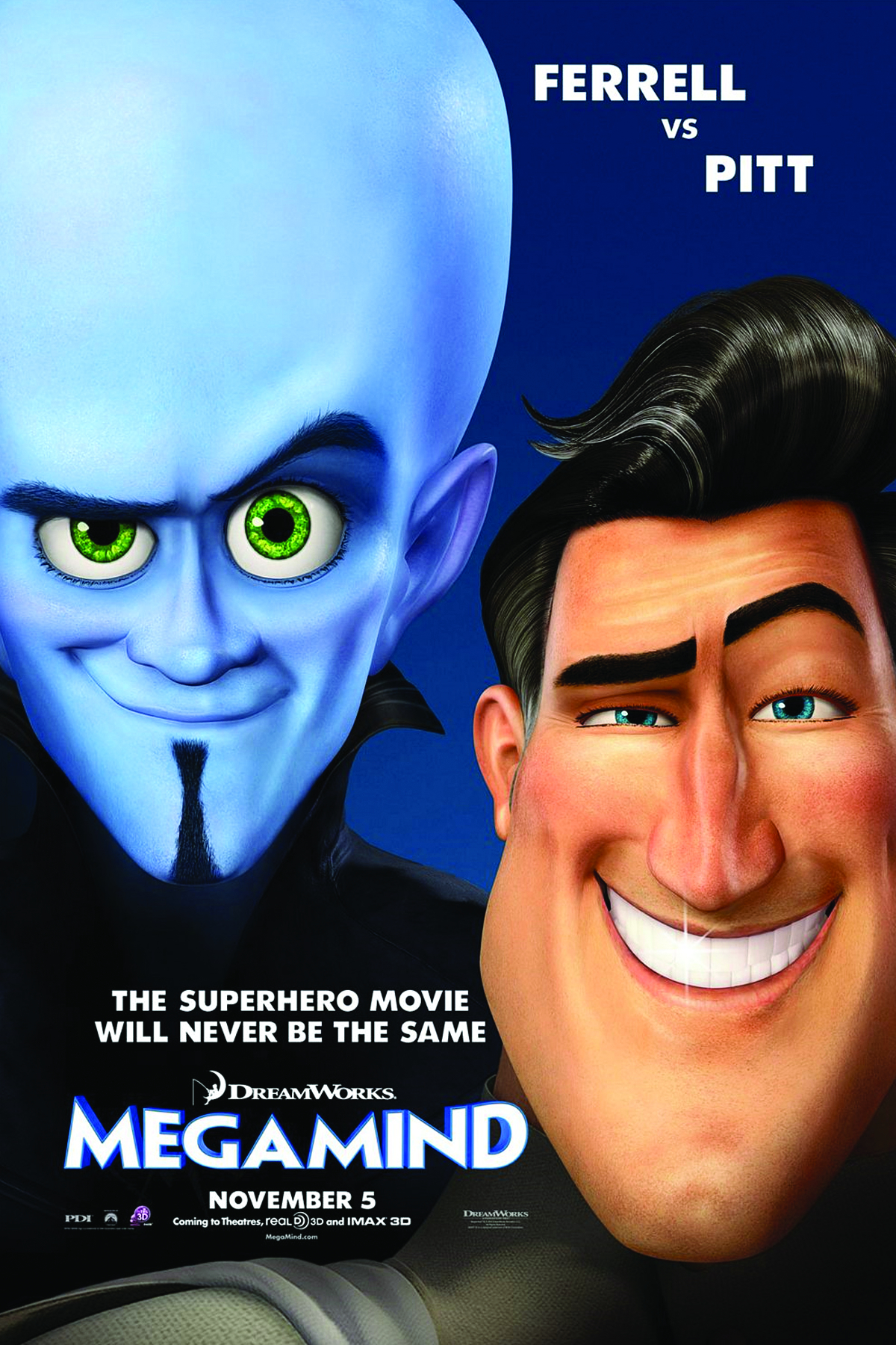 From DreamWorks, the studio behind Shrek, comes their newest CGI animated sensation! Megamind is the most brilliant super-villain the world has ever known... and the least successful. Over the years, he has tried to conquer Metro City in every imaginable way. Each attempt, a colossal failure thanks to the caped superhero known as "Metro Man," until the day Megamind actually defeats him in the throes of one of his botched evil plans. Suddenly, the fate of Metro City is threatened when a new villain arrives and chaos runs rampant, leaving everyone to wonder: Can the world's biggest "mind" actually be the one to save the day?
