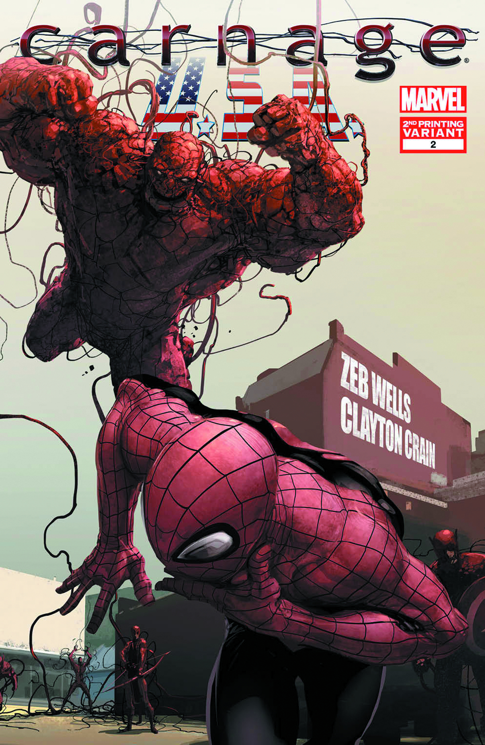 From Marvel Comics. The Avengers have fallen to Carnage! Only Spider-Man remains - but can he stop Carnage before the United States government makes a devil's pact ... with symbiotes?! Zeb Wells & Clayton Crain continue one town's fight to survive madness in