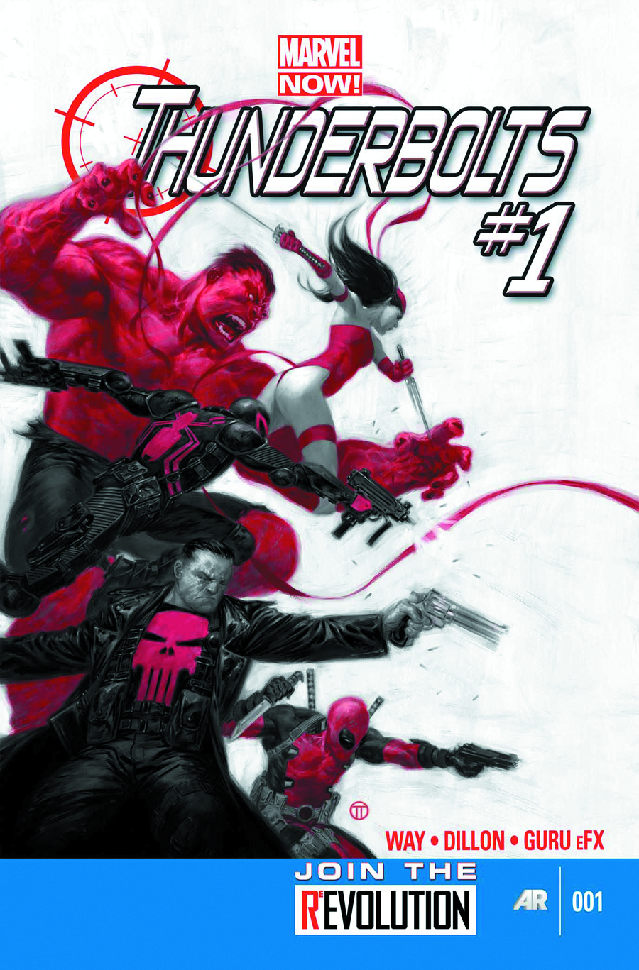 From Marvel Comics. Red Hulk, Venom, Elektra, Deadpool, the Punisher. Forget the courts, the jails, the system -- this team of Thunderbolts fights fire with fire, targeting the most dangerous and lethal players in the Marvel Universe with extreme prejudice. Led by General "Thunderbolt" Ross, AKA the Red Hulk, this hand-picked team of like-minded operatives is going to make the world a better place ... by all means necessary. Scheduled in stores 01/30/13. (161)