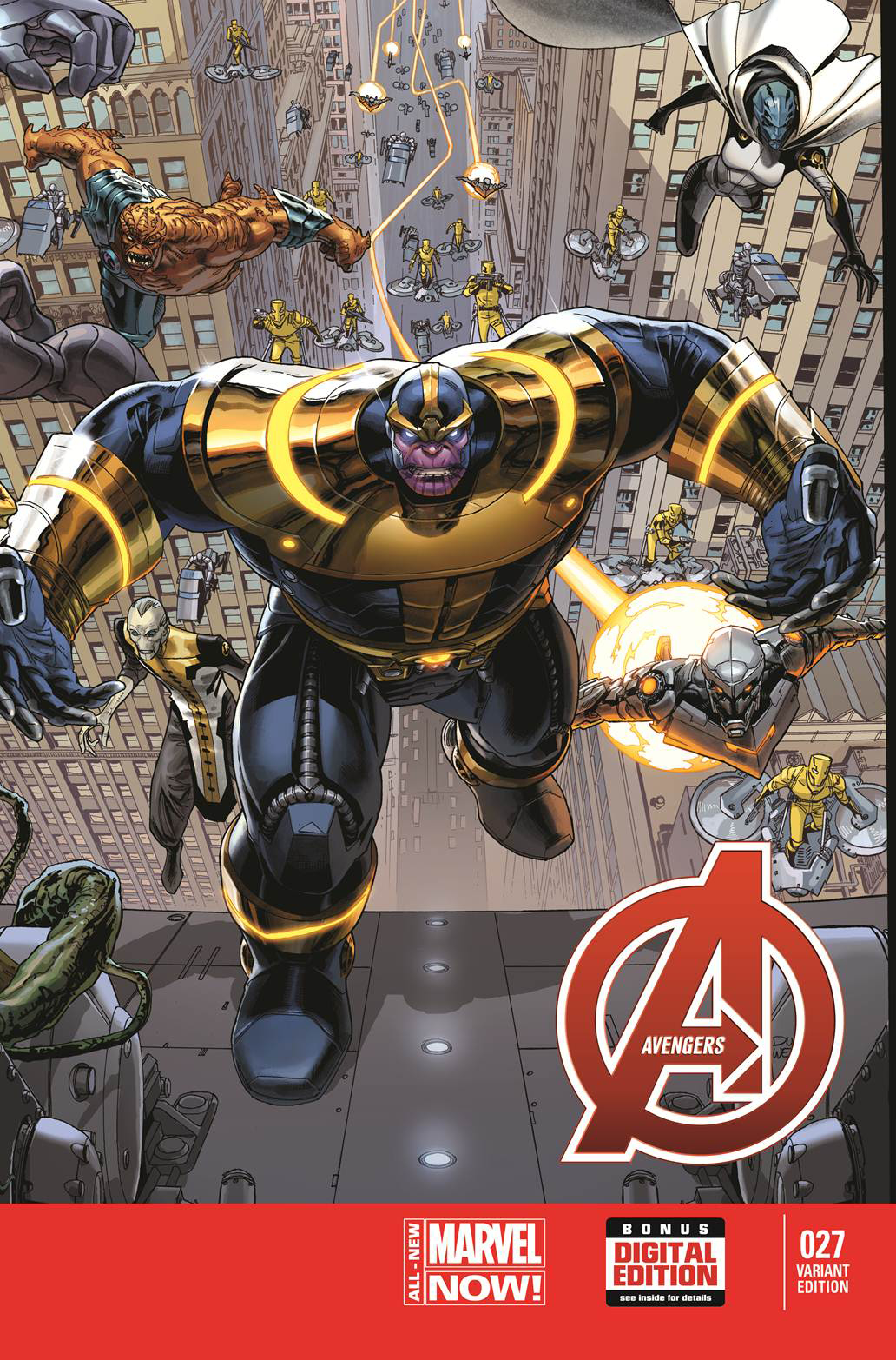 From Marvel Comics. "Adapt or Die" -- The secret behind the All-New Avengers revealed! The science war overtakes the world(s). All the answers to the questions you wished remained hidden. The collision of Avengers and New Avengers is imminent. NOTE: Supplies limited. Consult your retailer for availability. Scheduled to ship 03/12/14. (161)