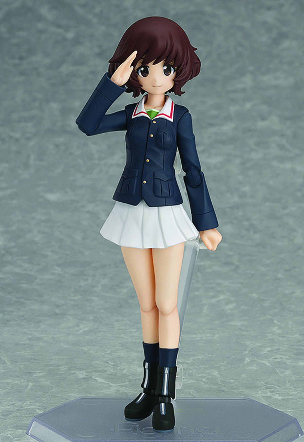 Yukari Akiyama from the Ankou Team! Using the smooth yet posable joints of figma, you can act out a variety of different scenes. A flexible plastic is used for important areas, allowing proportions to be kept without compromising posability. She comes with a gentle smiling expression, an excited expression and an embarrassed expression. Optional parts include a tank shell, gloves, and alternate messed up hair parts. A loader's seat and tank battery are also included, as is an articulated figma stand.