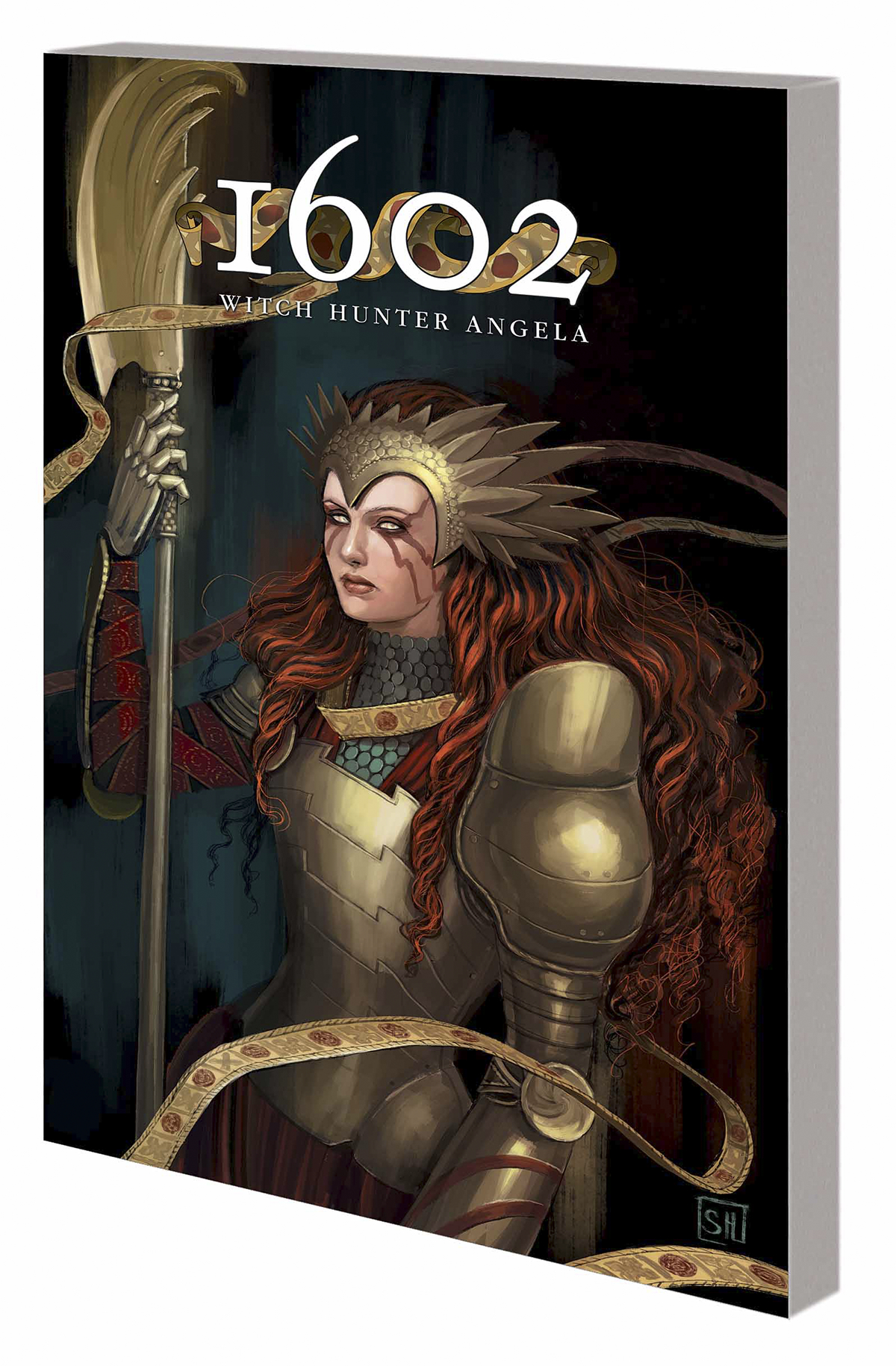 In one of the most magical realms on Battleworld, Angela and Sera are Witch Hunters -- the scourges of King James' England, just as it stood in 1602. But their target now is a new breed of evil: the power-bargaining Faustians! The Faustians have made their deal not with the Devil, but with the ever-seductive Enchantress -- and that may be just as deadly. Have your psychic ribbons and lethal weapons at the ready, for the hunt is on! But beware a land where the dead walk, the faerie folk flutter and a ragtag band of ne'er-do-wells perform for your entertainment -- that's right, it's the Guardians of the Galaxy, 17th-century style! Plus: Revisit the early dawn of the Marvel Universe in the first issue of Neil Gaiman's original classic 1602! Collecting 1602 WITCH HUNTER ANGELA #1-4 and 1602 #1.