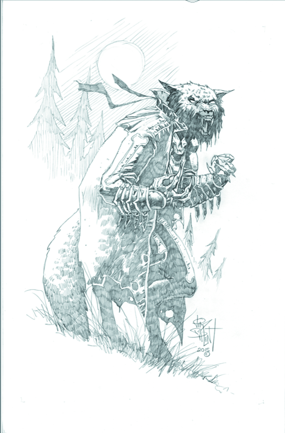 Tarot #96 (either Cover A or Cover B) and a black & white 6 1/2" x 10" lithograph of Jon, "Skeleton Wolf ." This limited collector's litho is penciled by the artist himself, Jim Balent!