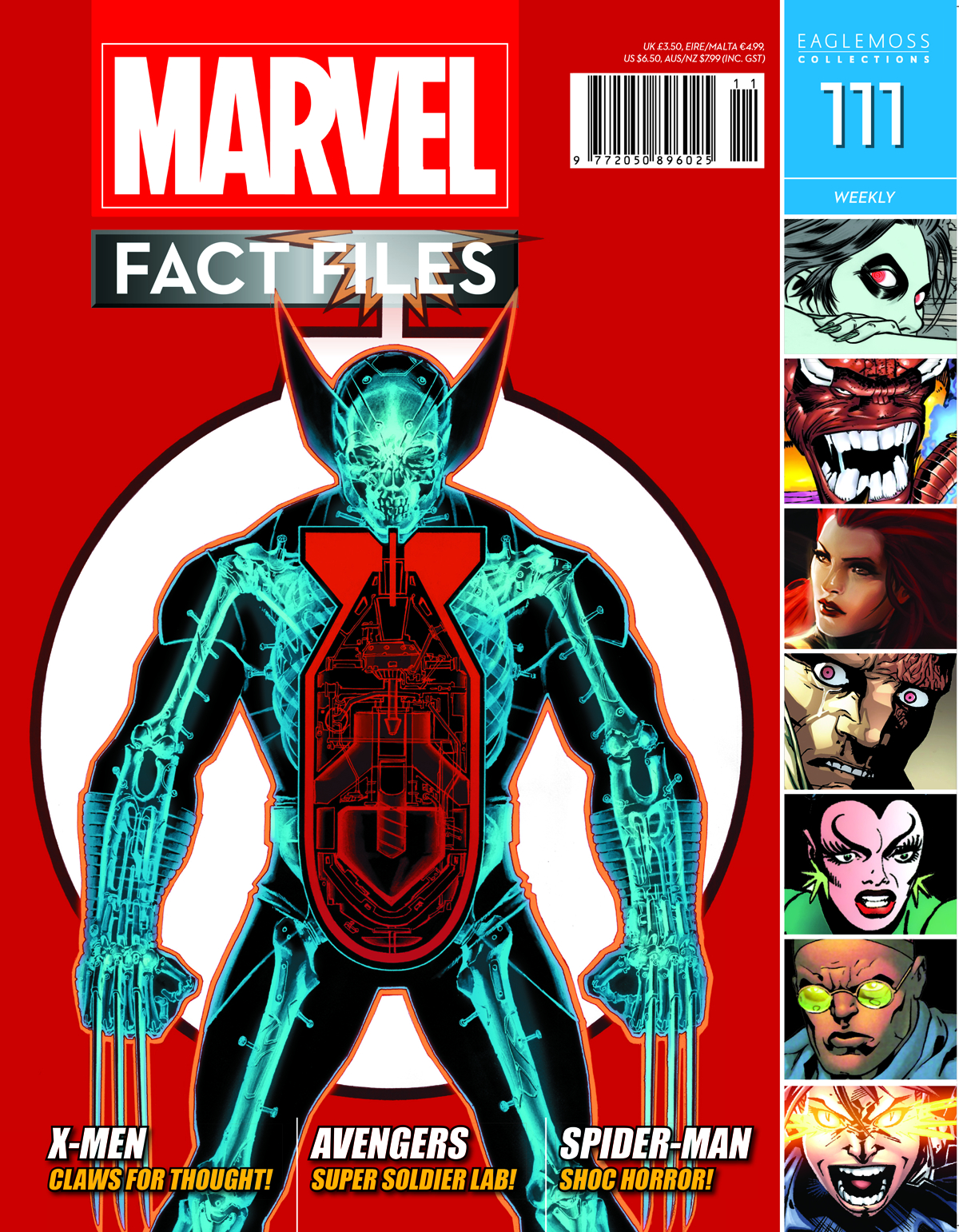 Marvel Fact Files is a weekly publication that builds up to create a fantastic in-depth guide to the Marvel Universe, packed with information on all the heroes and villains, their weapons, vehicles and technology. Every issue features original cutaway artwork that reveals hidden secrets, detailed profi les of characters, a history of the teams, and a timeline of Marvel's greatest battles, plus inside information about the history of Marvel Comics.