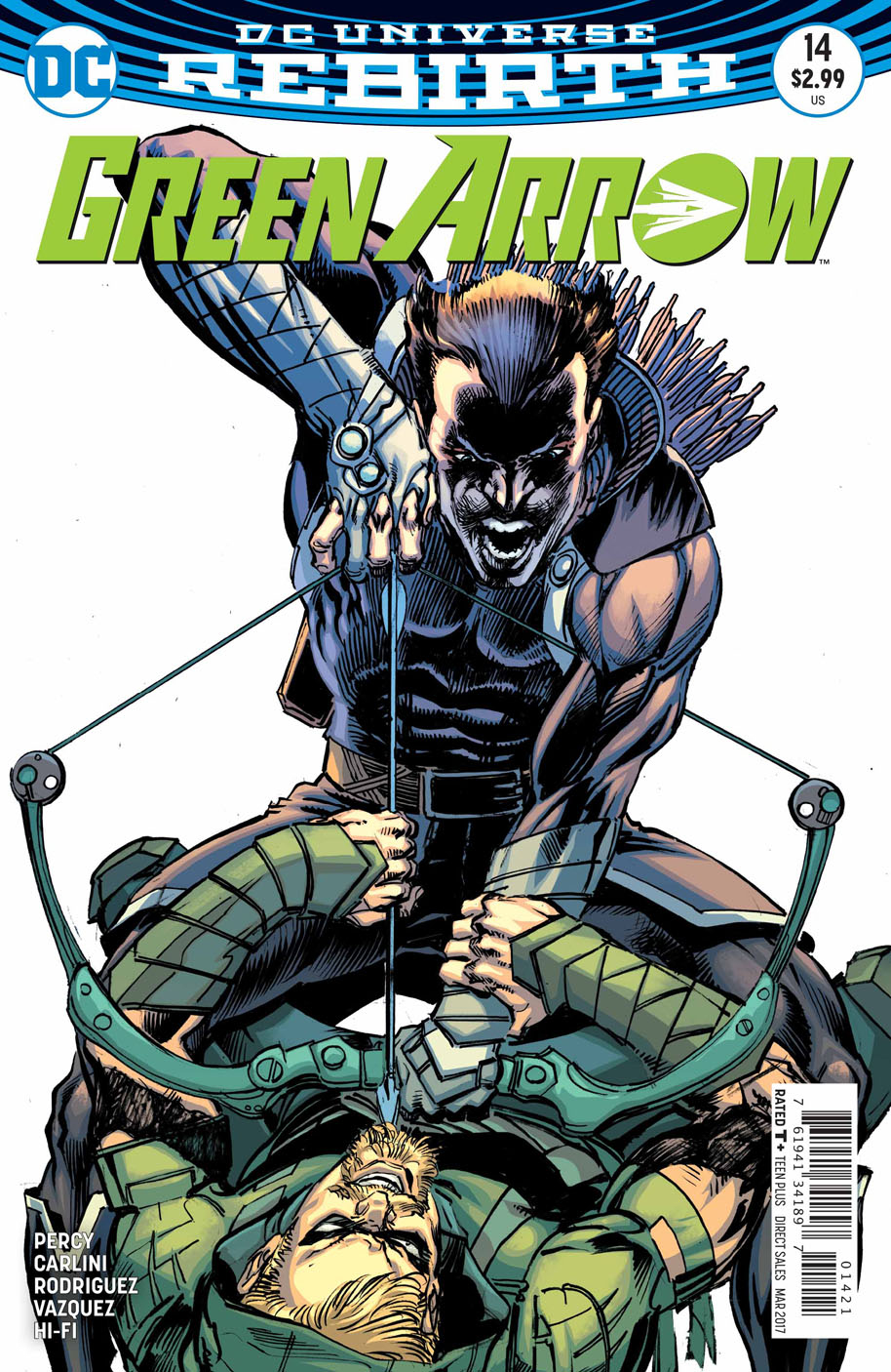 "EMERALD OUTLAW" part three! Tension in Seattle reaches fever pitch when the media begins to question Green Arrow's involvement in a series of murders committed by an archer with unmatched skills. If the police can't catch this mysterious archer, can Green Arrow and Black Canary? Plus, the rogue police officer Ollie humiliated in a viral video returns to take the law into his own hands.