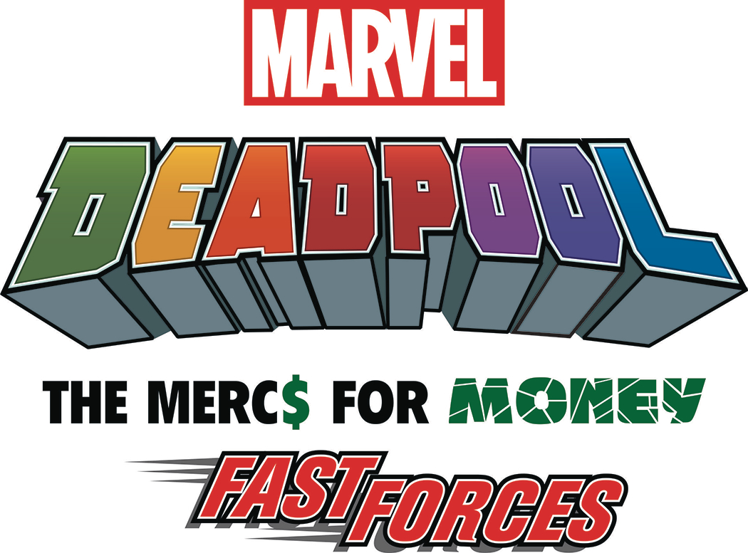 Mercs for Money Fast Forces 6-Pack (with Deadpool, Foolkiller, Madcap, Slapstick, Solo, and Stingray), Plus, there's a Dice and Token Pack that contains 2 custom Deadpool dice and 6 action tokens.