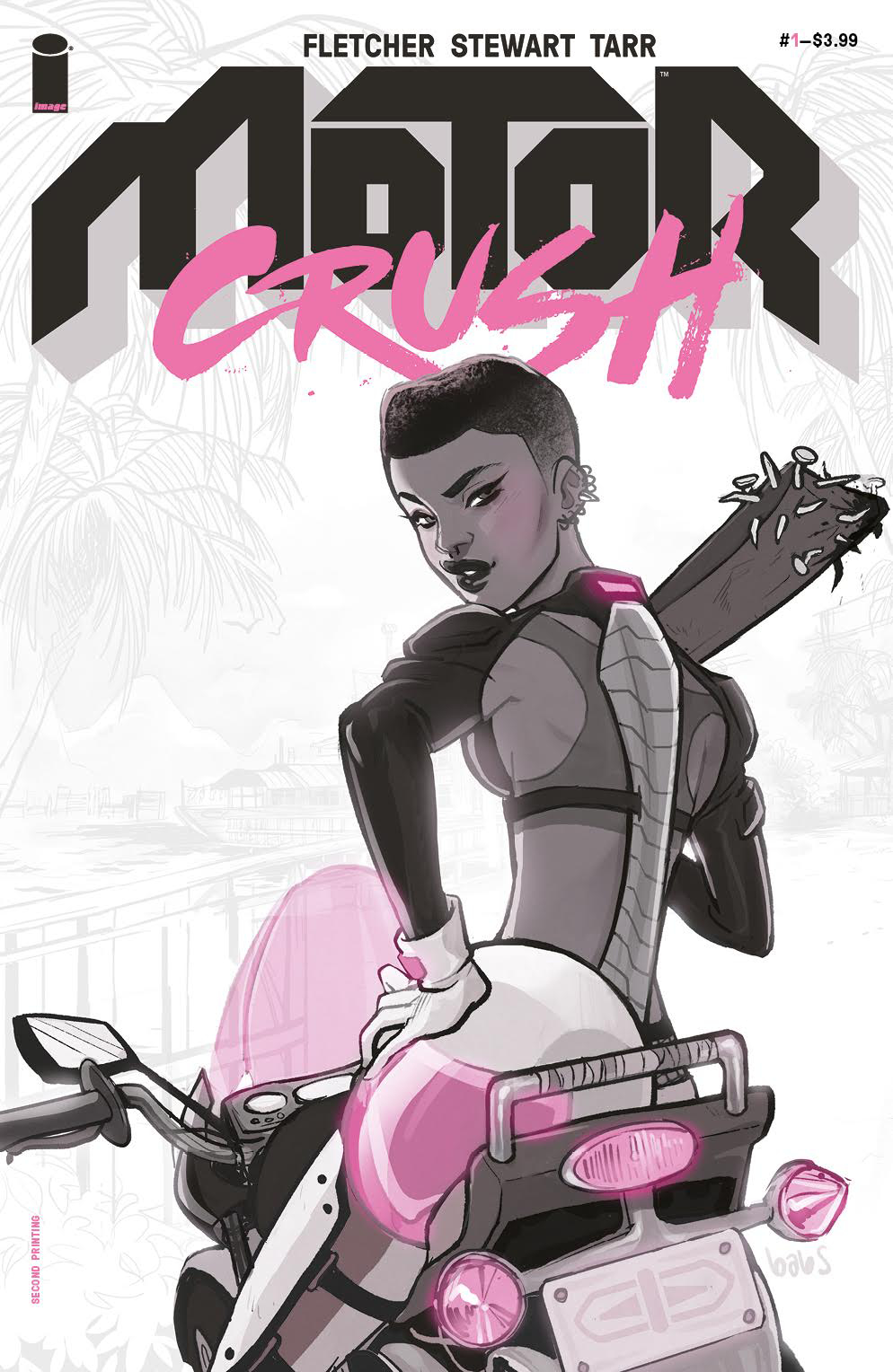 The team behind the critically acclaimed revamp of Batgirl returns with an exciting sci-fi action-adventure series! By day, Domino Swift competes for fame and fortune in a worldwide motorcycle racing league. By night, she cracks heads of rival gangs in brutal bike wars to gain possession of a rare, valuable contraband: an engine-boosting "machine narcotic" known as Crush.